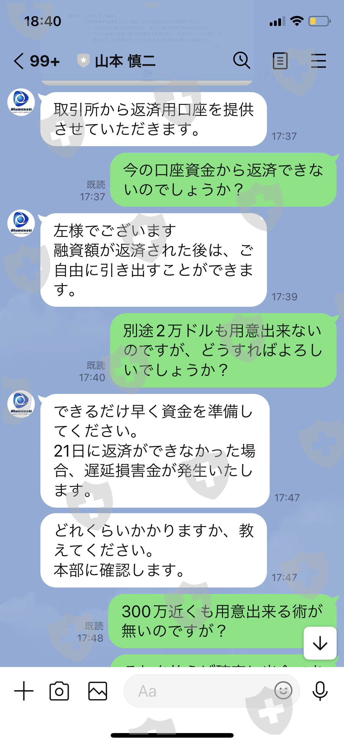 取引きで利益が出たので3日ほどで返済しようと連絡しましたが、口座からは返済出来ないとのことで、先に現金で2万ドル振り込んでくださいとの事でした。