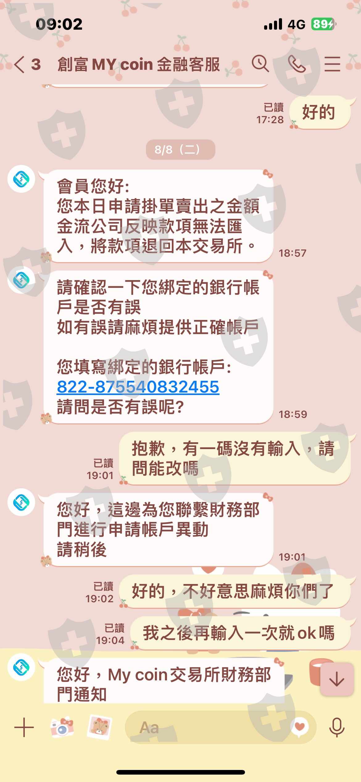 一步一步詐騙話術告訴你要存入金才可以請工程師去操作,等操作完就跟你說你帳戶一開始設定錯,需要在補一些錢才能去更改,但等你繳完之後就換跟你說因為超過太多所以被監察稽查到,要補服務費去給他審核最後會還,然後到現在都沒回應說出金了