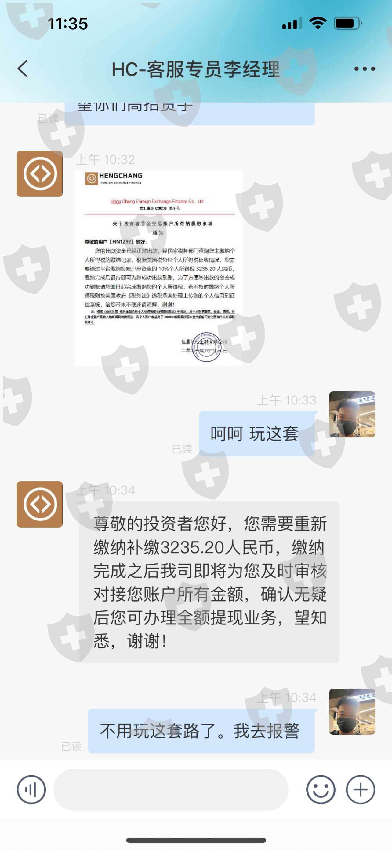 之前通过炒股接触的好友。在畅言里有老师带动炒股 后来说股市不行了。大家一起去炒黄金 收益率很高。我也去试试水。玩了几天 想把自己的本金提现出来 客服就找各种理由不给提现。后来让我交税 更有意思的是税务局下面打成水务局。这不是骗子是什么