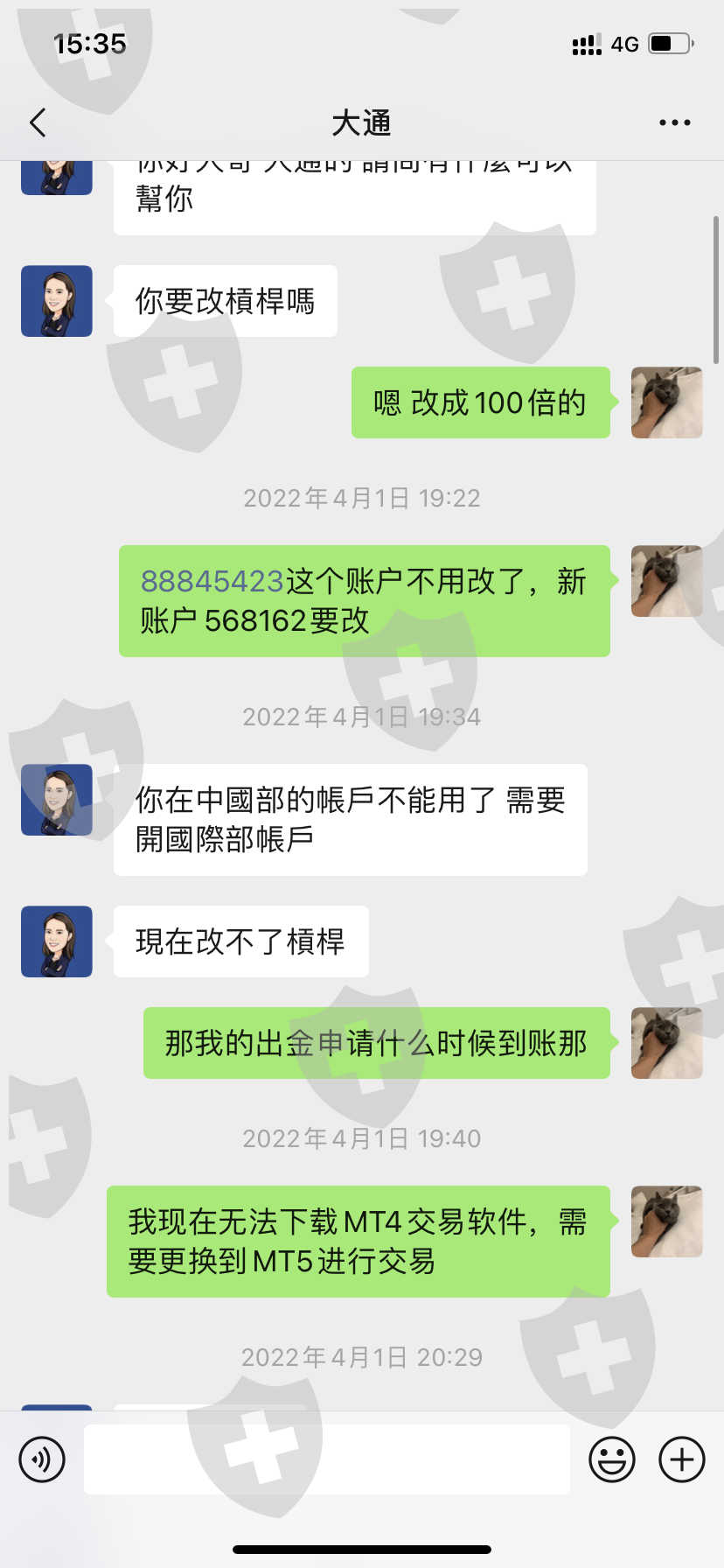 22年4月入金,当时没注意看,第二天想出金就没反应了,中途联系过大通的客服,直接说我的账户不能用了。