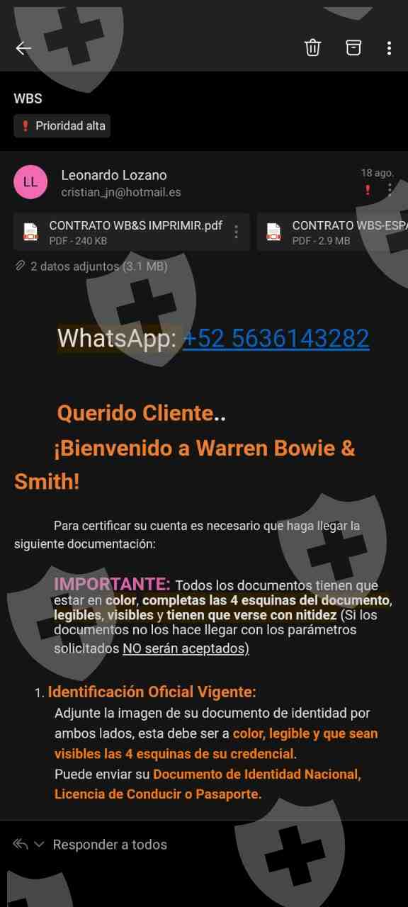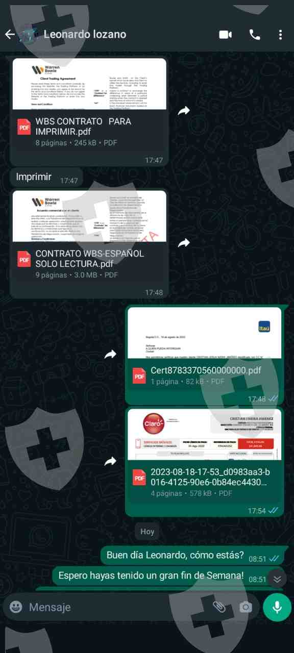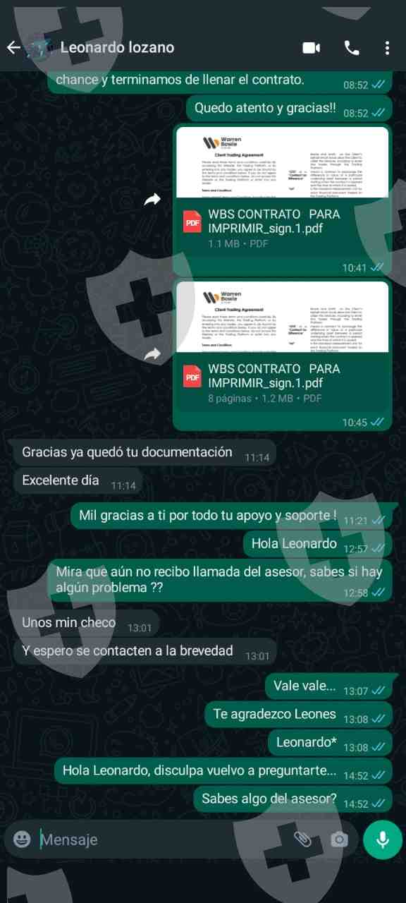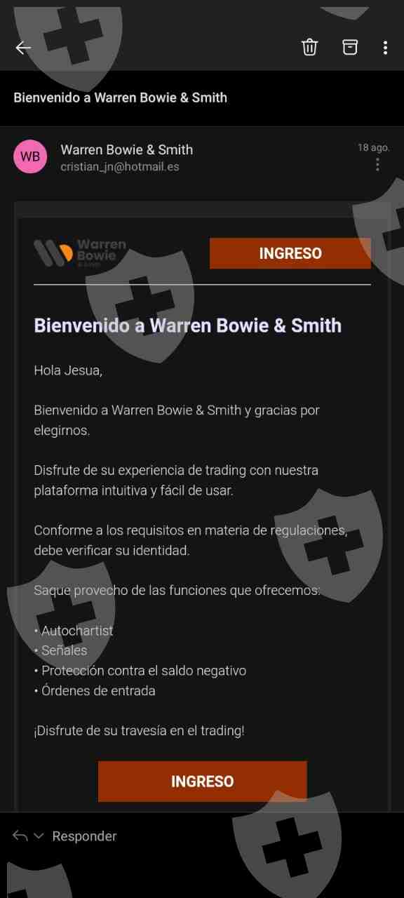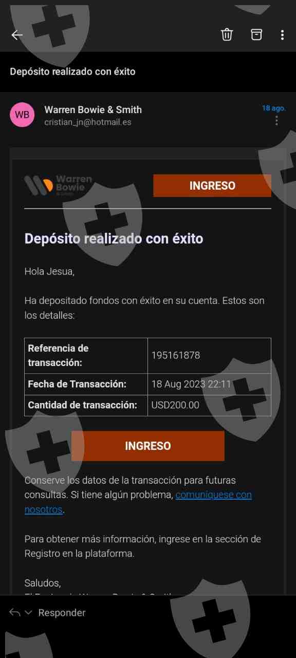 Se comunicó conmigo un "aseso" de Warren Bowie & Smith el cual me engancho para que yo hiciera un depósito de USD 200 y posterior mente, se comunicó conmigo otra persona para completar una documentación que hacía falta y que posteriormente se comunicaba conmigo otro asesor para iniciar el proceso de trading en la plataforma a lo cual no se ha comunicado nadie