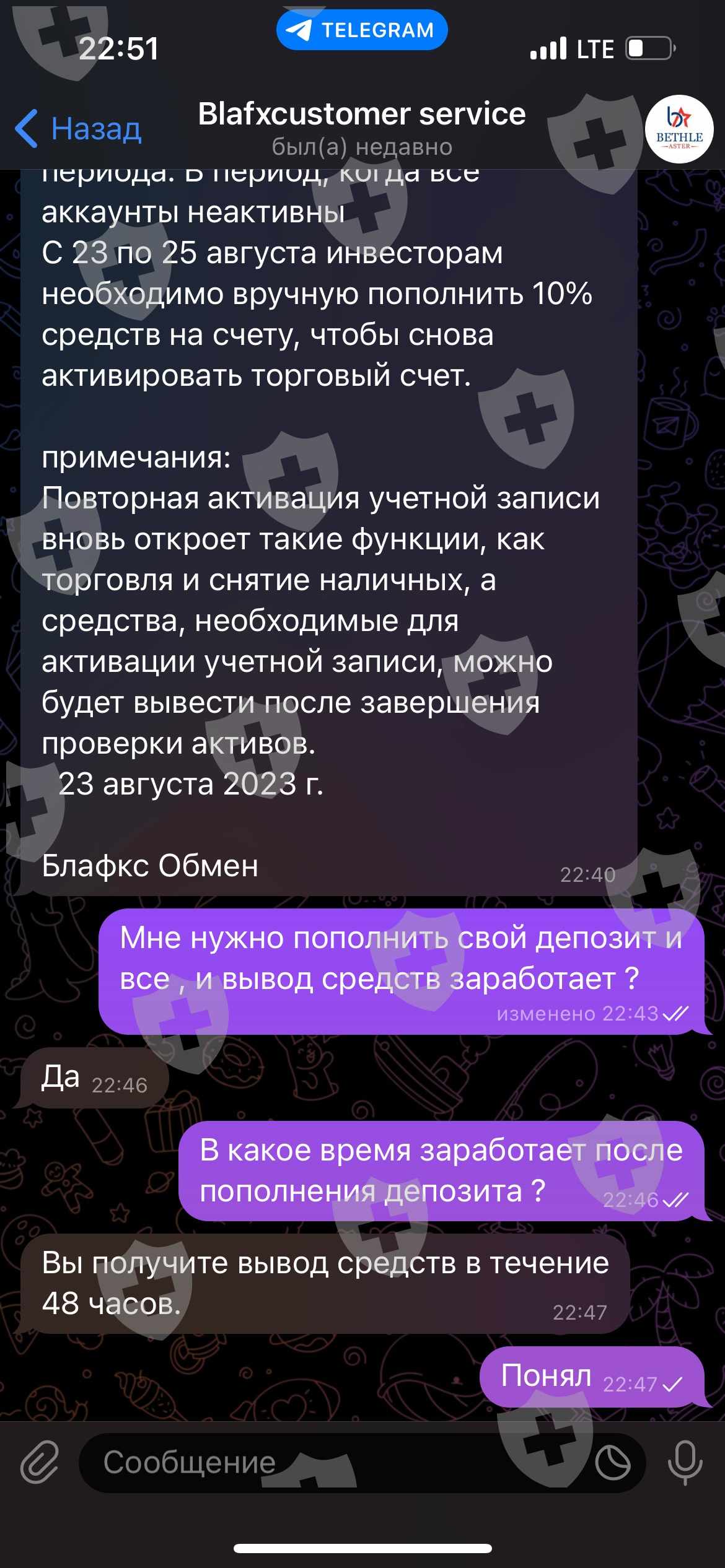 С 23 по 25 августа инвесторам необходимо вручную пополнить 10% средств на счету, чтобы снова активировать торговый счет.