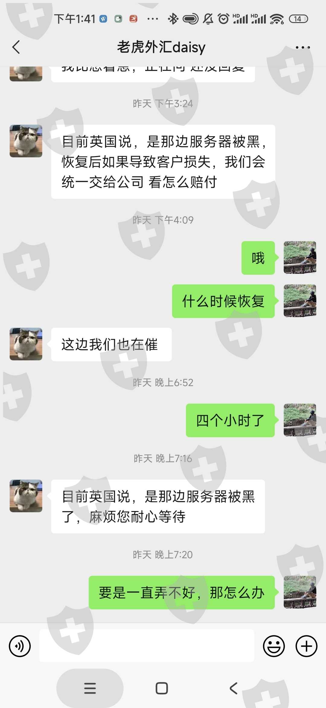 他们昨天跟我说,平台被黑,让我耐心等待,今天已经不回复了,到百度贴吧,老虎金融吧