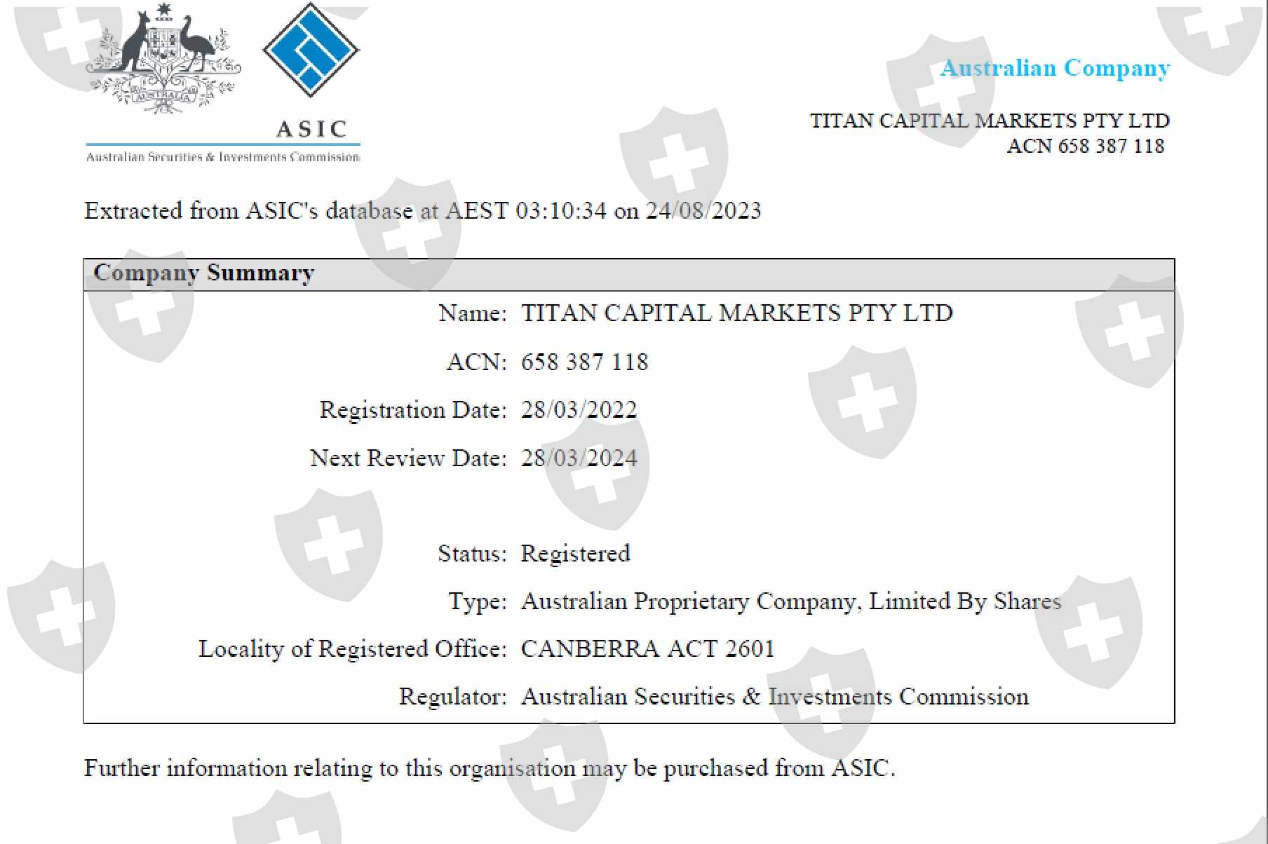 TITAN CAPITAL MARKETS DON'T HAVE VALIED BROKER LICENCE ITS REGISTERED IN AUSTRALIA AS A Australian Proprietary Company, Limited By Shares, ITS A BIG SCAM LIKE MTFE