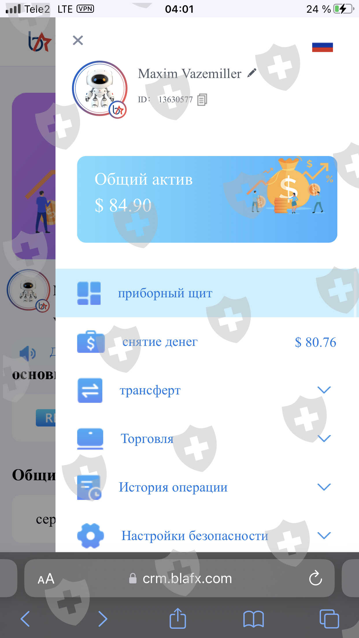 Доброго времени суток. Хочу сделать заявление о невозможности вывода средств с торгового счета моего акаунта на бирже BlaFX. С 11.04.2023 я являюсь инвестором на бирже BlaFX, депозит моего торгового счета составляет 80.94$. В настоящее время на платформе запрещен вывод средств, причины заморозки торгового счета разъяснены не были, никаких уведомлений на почту не приходило. Служба технической поддержки дает образную связь и требует пополнить 10% от депозита для разблокировки торгового счета. Так же было официальное заявление со стороны поддержки о каком-то слиянии, что в ближайшее время приведет к исчезновению BlaFX и удалению всех акаутов и исчезновению их депозитов.