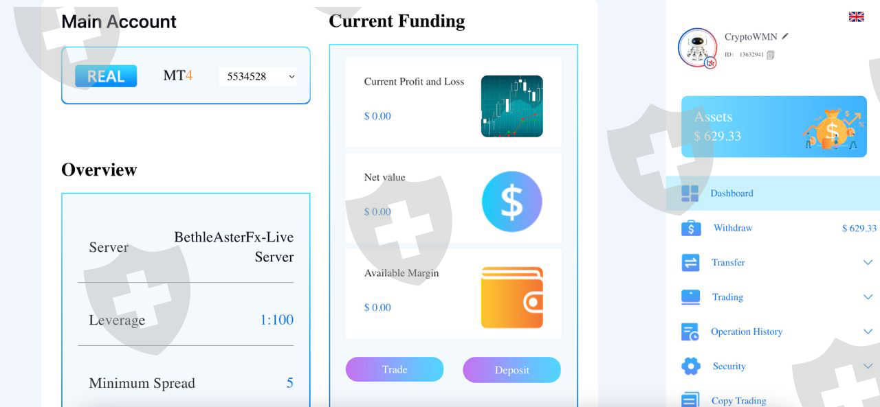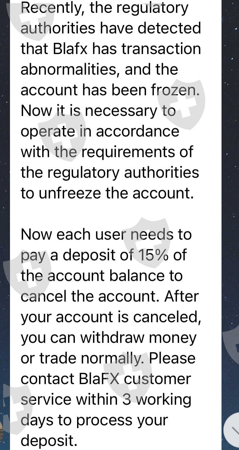 资金被冻结(账户上有 629 美元),无法对他们进行任何操作。他们说你需要存入15%的存款才能提取你的钱。 MT4 已被禁用。