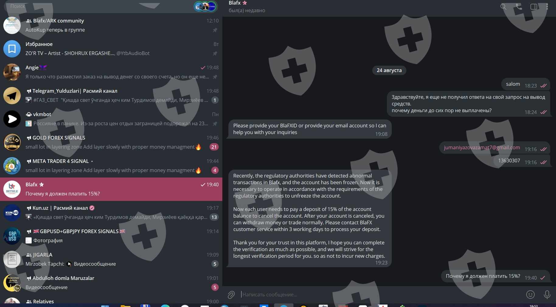 我目前无法从平台提款 佰利安环球。我一写信支持他们就要求支付 15% 请帮忙