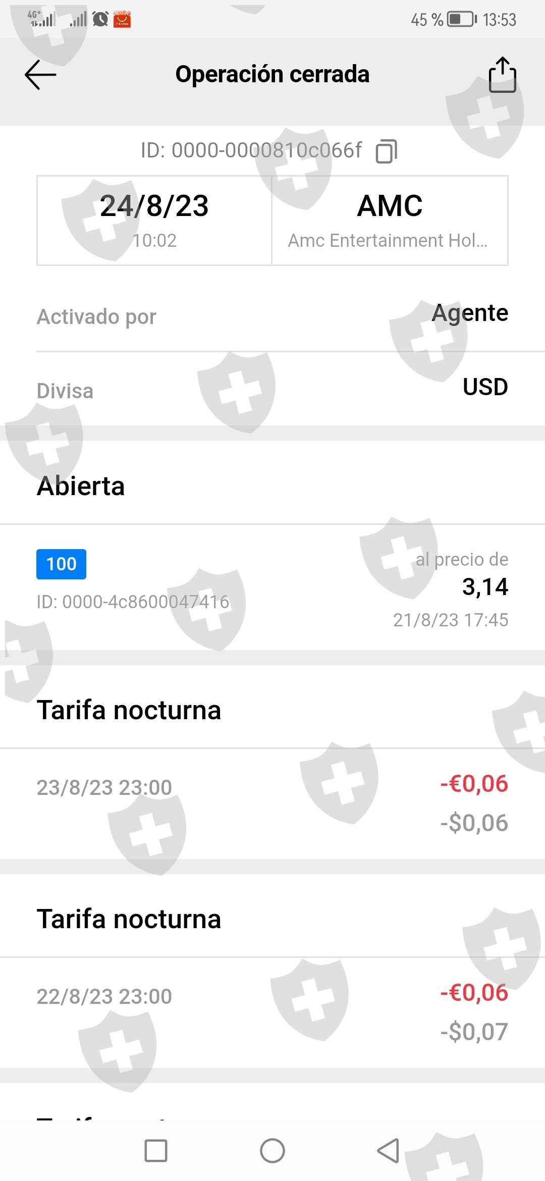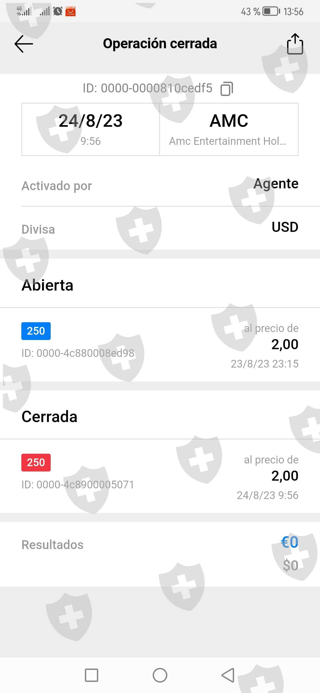 我和我的家人在 AMC 股票上投资了超过 14,000 欧元。我们购买了该股票,价格为 4 欧元,然后价格下跌,即便如此,一切都很顺利,跌至 2 欧元,我们购买了更多股票,今天 08 /24/ 2023 年,份额上涨了 900%,升至 20 欧元,我们会看看我们的余额是否增加,但相反,它所做的是关闭我们以 2 欧元进行的购买,而一伙小偷进行了购买 20 欧元,当我们联系一伙骗子时,他们没有通过平台回复我们