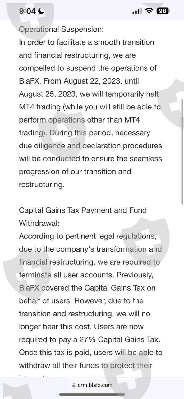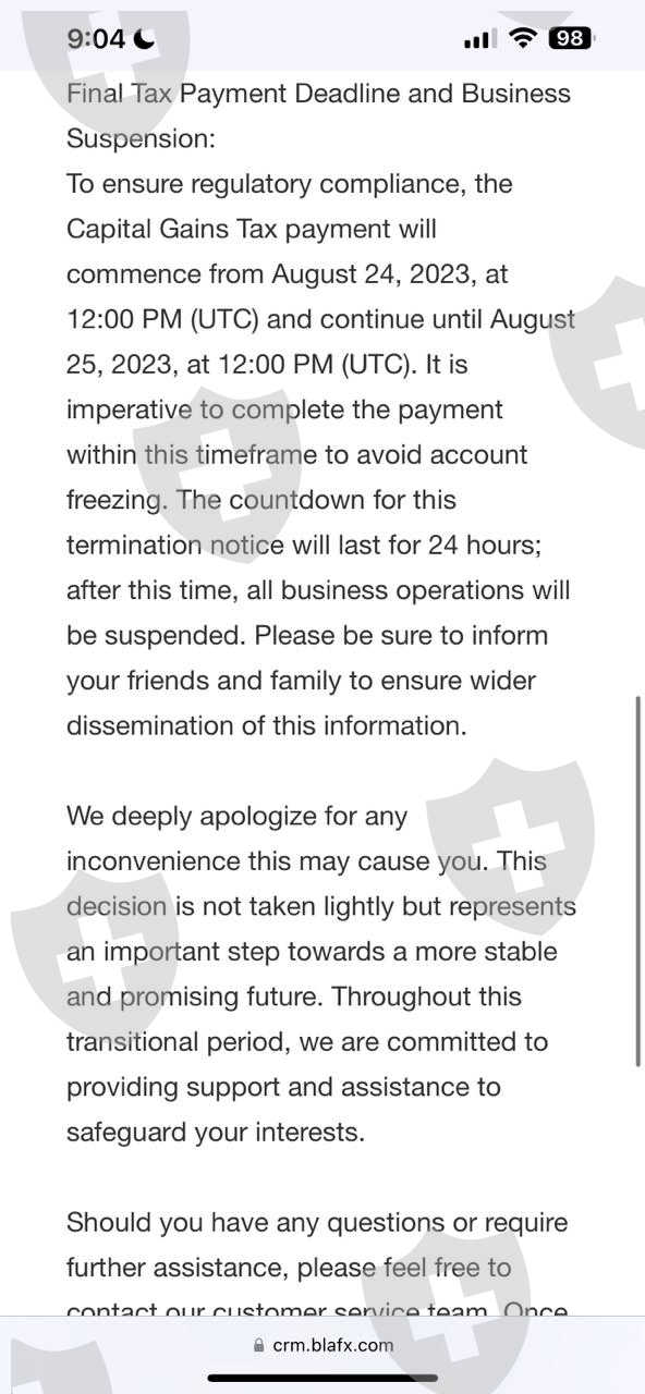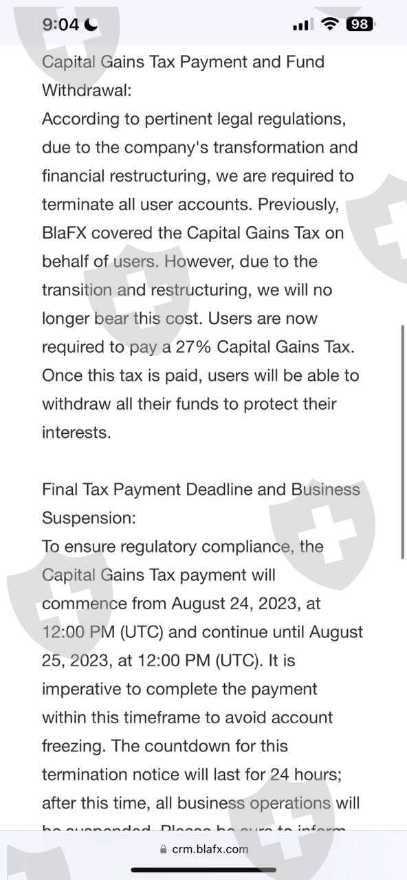 Я завела на биржу 9 216,46$, но сегодня появилось на сайте биржи сообщение , что деньги будут заблокированы в 12:00 PM (UTC) 25 августа, если не внести дополнительно 27% . На данный момент вывод денег не доступен.