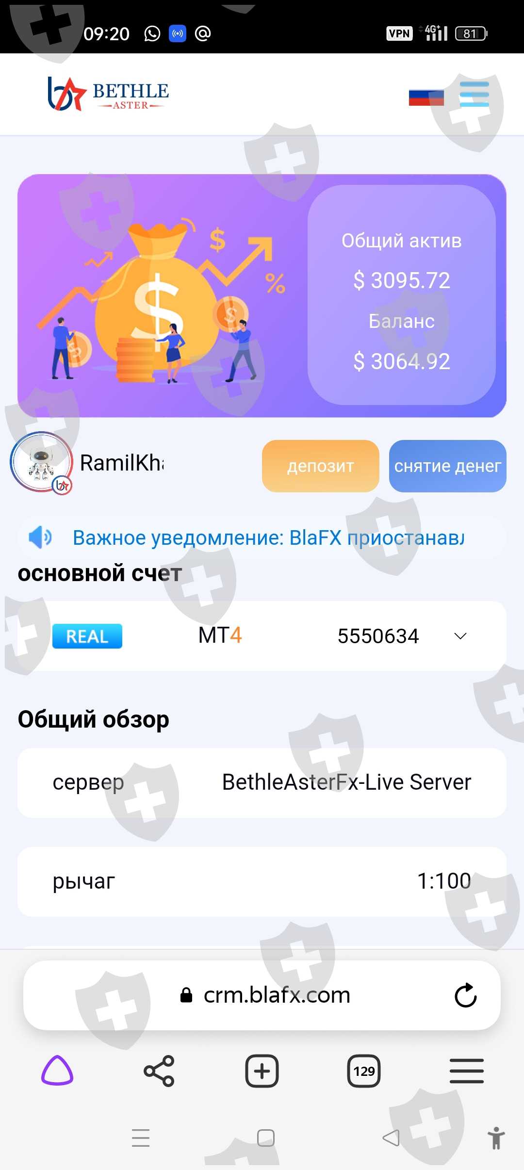 According to pertinent legal regulations, due to the company's transformation and financial restructuring, we are required to terminate all user accounts. Previously, BlaFX covered the Capital Gains Tax on behalf of users. However, due to the transition and restructuring, we will no longer bear this cost. Users are now required to pay a 27% Capital Gains Tax. Once this tax is paid, users will be able to withdraw all their funds to protect their interests.