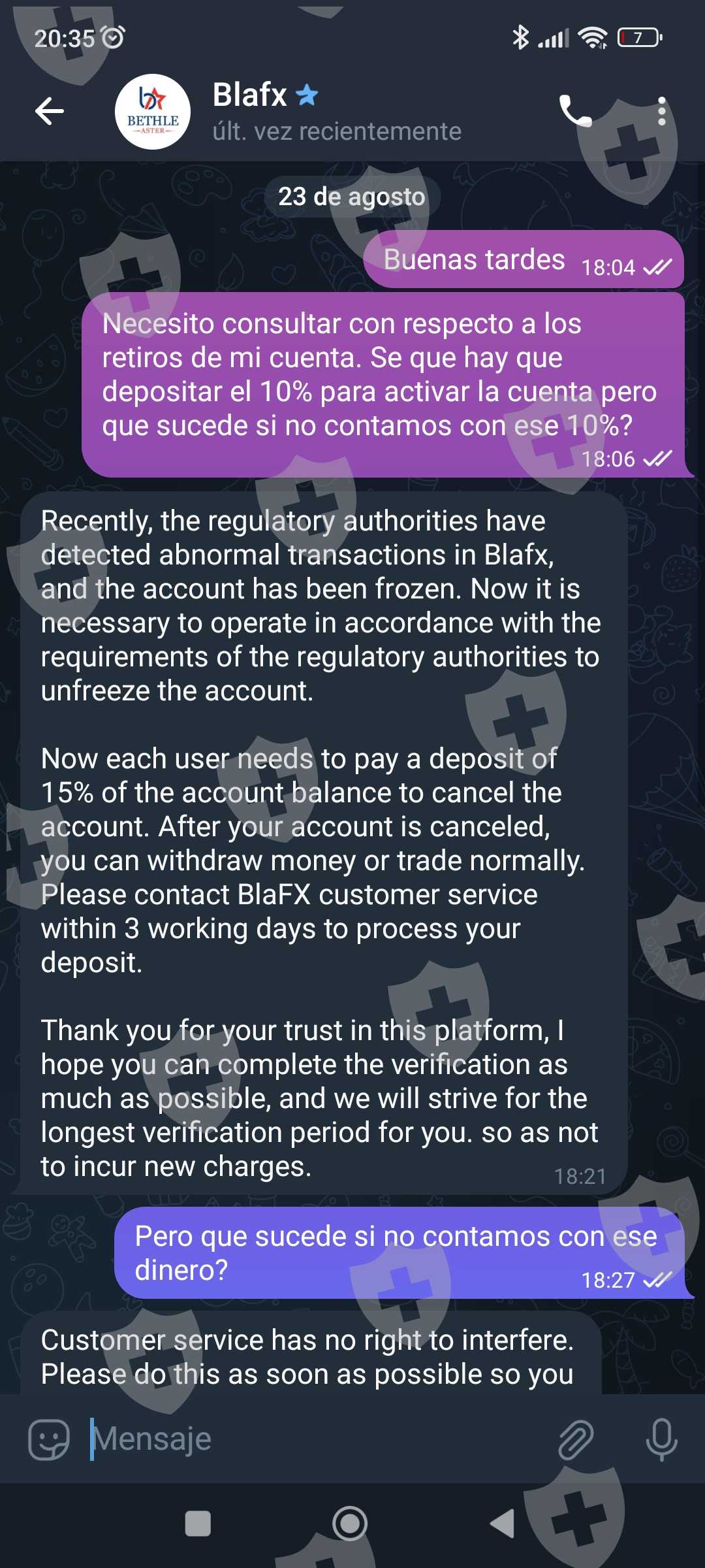 El día 24/08 informaron que si no pagamos dentro de las 24hs un impuesto a la ganancia del 27% nos congelarán la cuenta perdiendo todos los fondos.