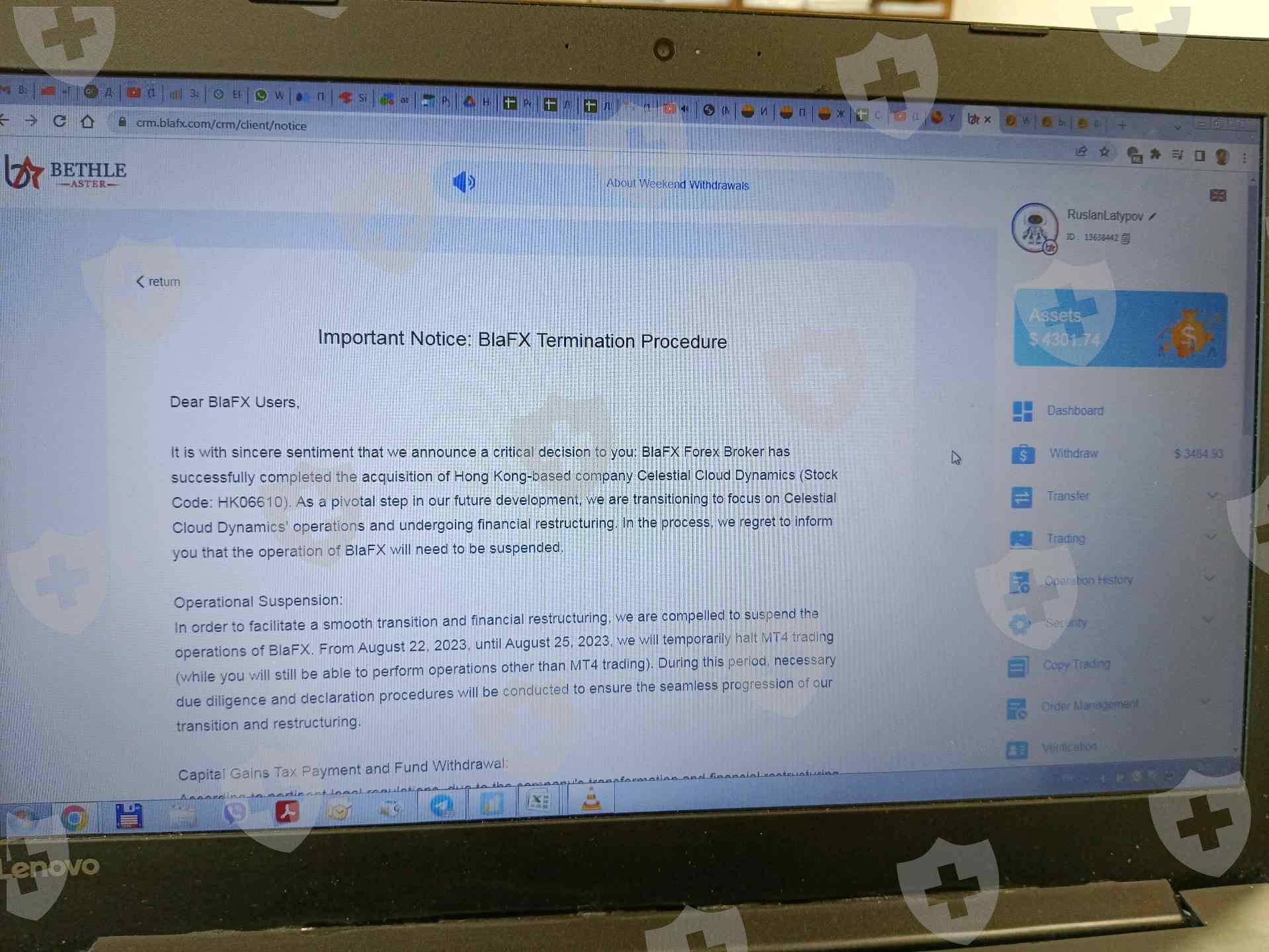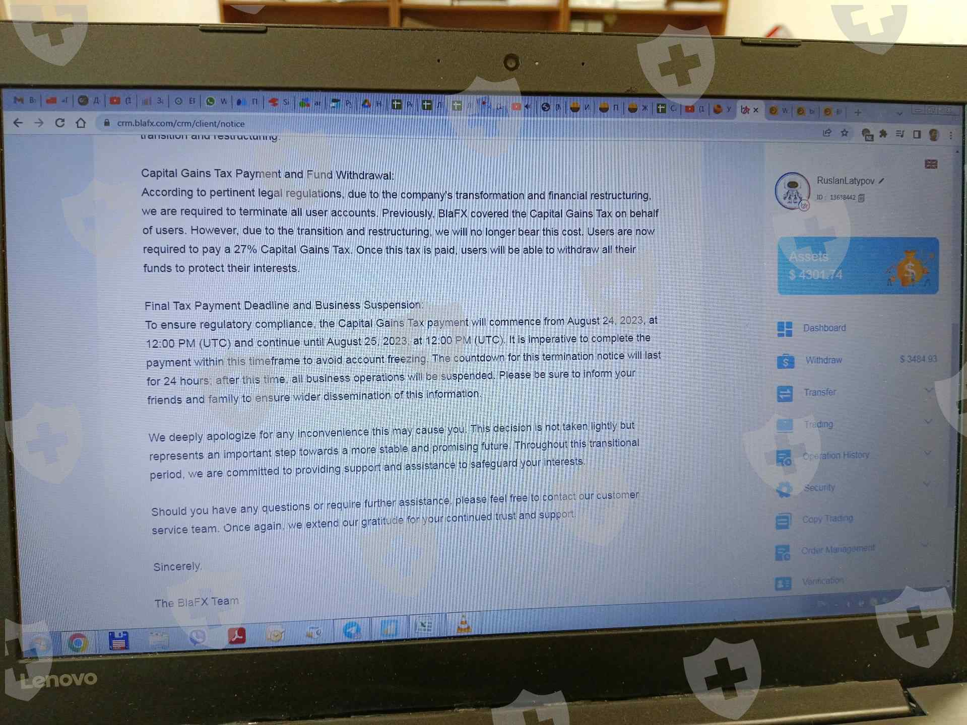 Заблокировали вывод денежных средств с 19.08.2023 под предлогом акции и слияния компании. Требуют внести 27% от депозита для доступа к моим денежным средствам. Сегодня 25.08.2023 планируют закрывать свой сайт и присвоить все мои деньги.