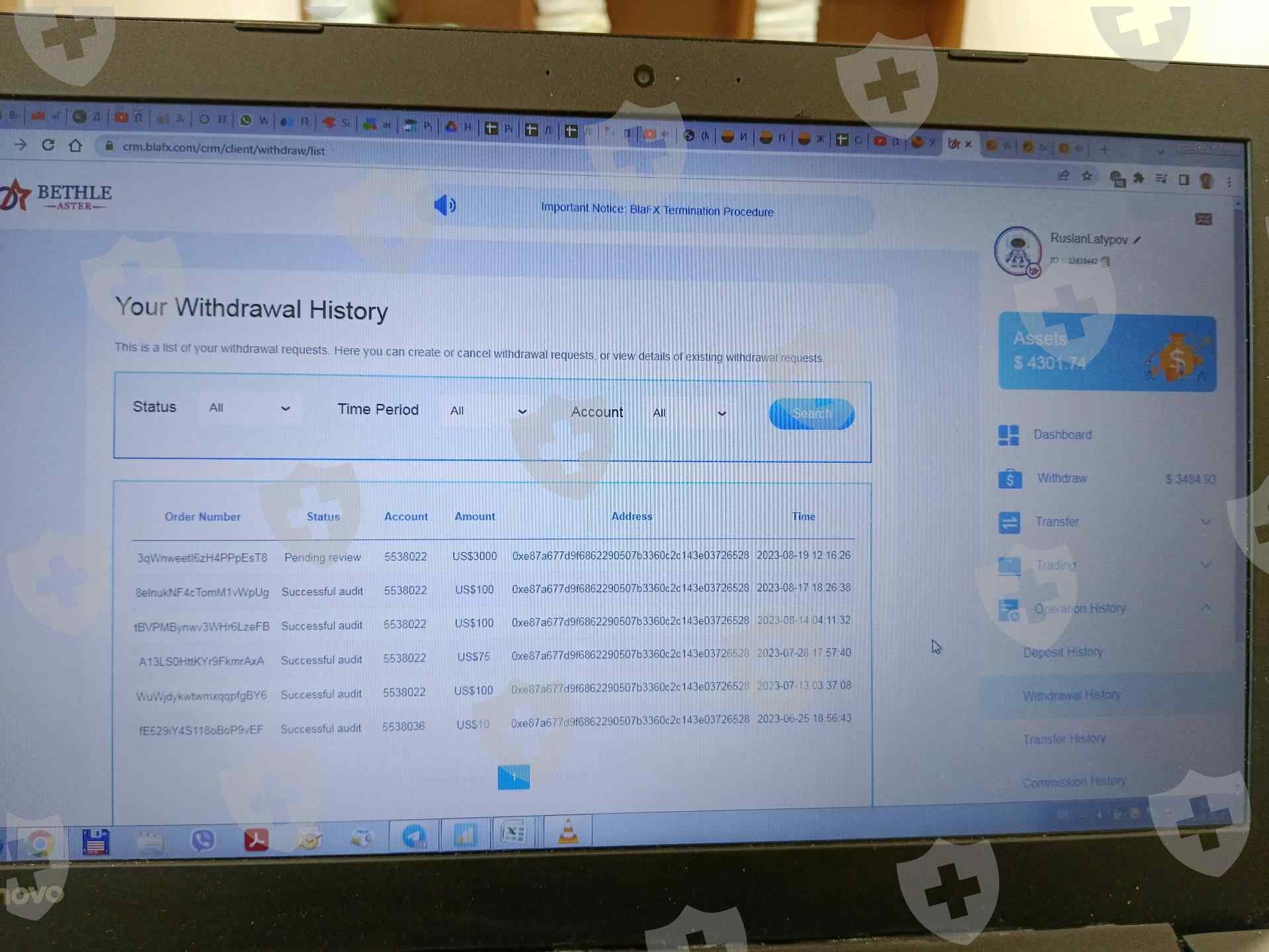 自 2023 年 8 月 19 日起,以公司促销和合并为借口阻止提取资金。他们需要 27% 的存款才能使用我的资金。今天,2023 年 8 月 25 日,他们计划关闭他们的网站并挪用我所有的钱。