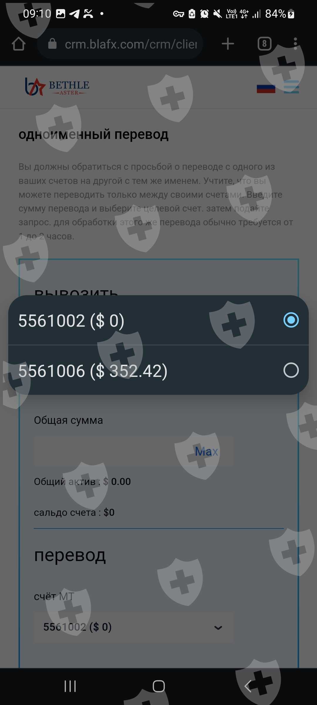 Здравствуйте. Меня зовут Каюмов Ринат Абдулкадырович. Я являюсь инвертором биржи BlaFX. Хочу сделать заявление о невозможном выводе денежных средств с моего торгового счета. В настоящее время на платформе запретили вывод денежных средств. О сложившейся ситуации мною не было получено ни одного уведомления. Служба технической поддержки держит обратную связь и требует немедленного пополнения 50% от депозита на мой аккаунт для разморозки торгового счета. Номер торгового счета: для разморозки торгового счета. Номер торгового счета: 5561006 . В случае не пополнения и не выполнения данных условий аккаунт будет удален 352$