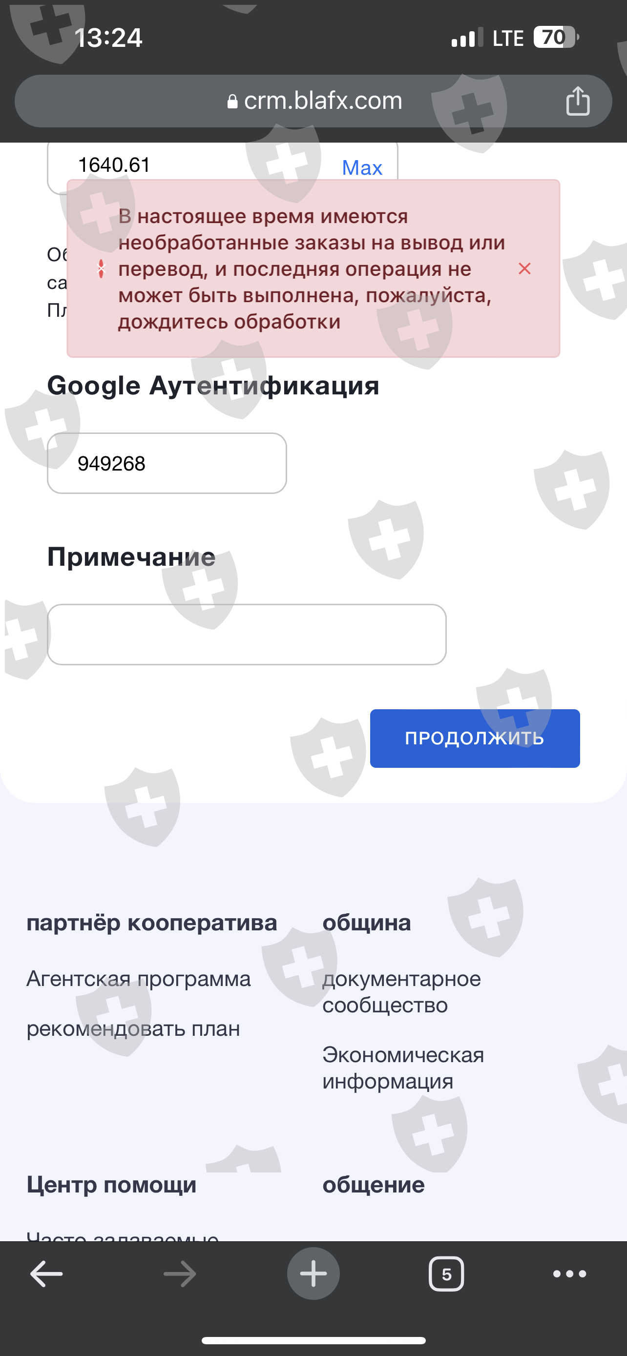 невозможно вывести деньги