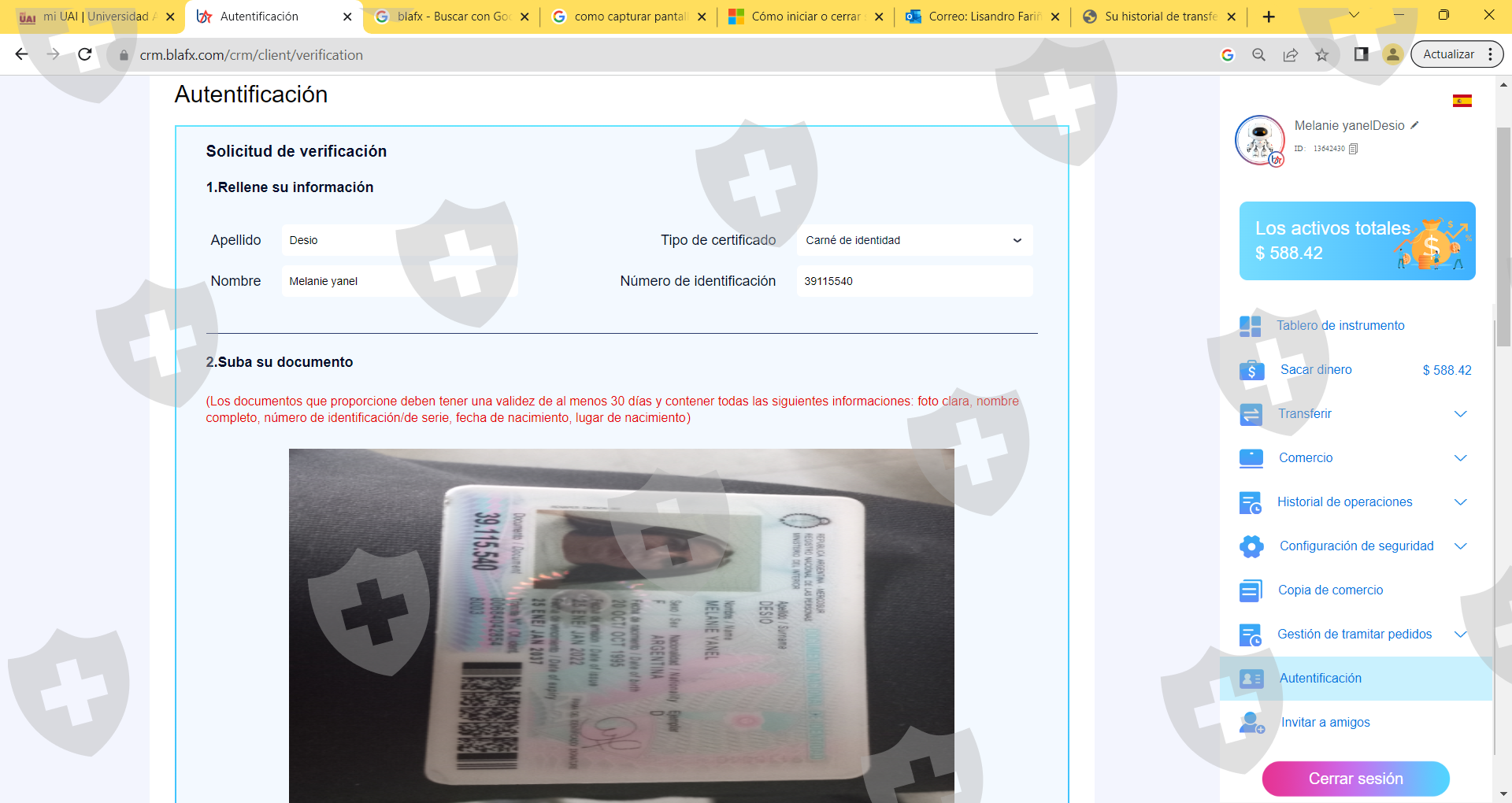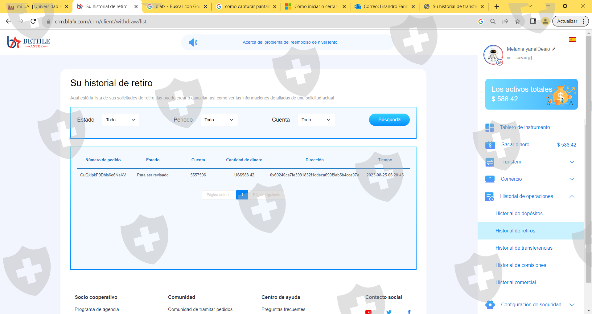 早上好,亲爱的,这家公司冻结了我的钱,他们要求我们存入 27% 的税款,然后他们要求存入 10%,然后账户就被冻结了。我想将我所有的钱提取到币安,我留下我的帐户详细信息ID 13642430,我在应用程序中的金额是588.42。附丝网印刷