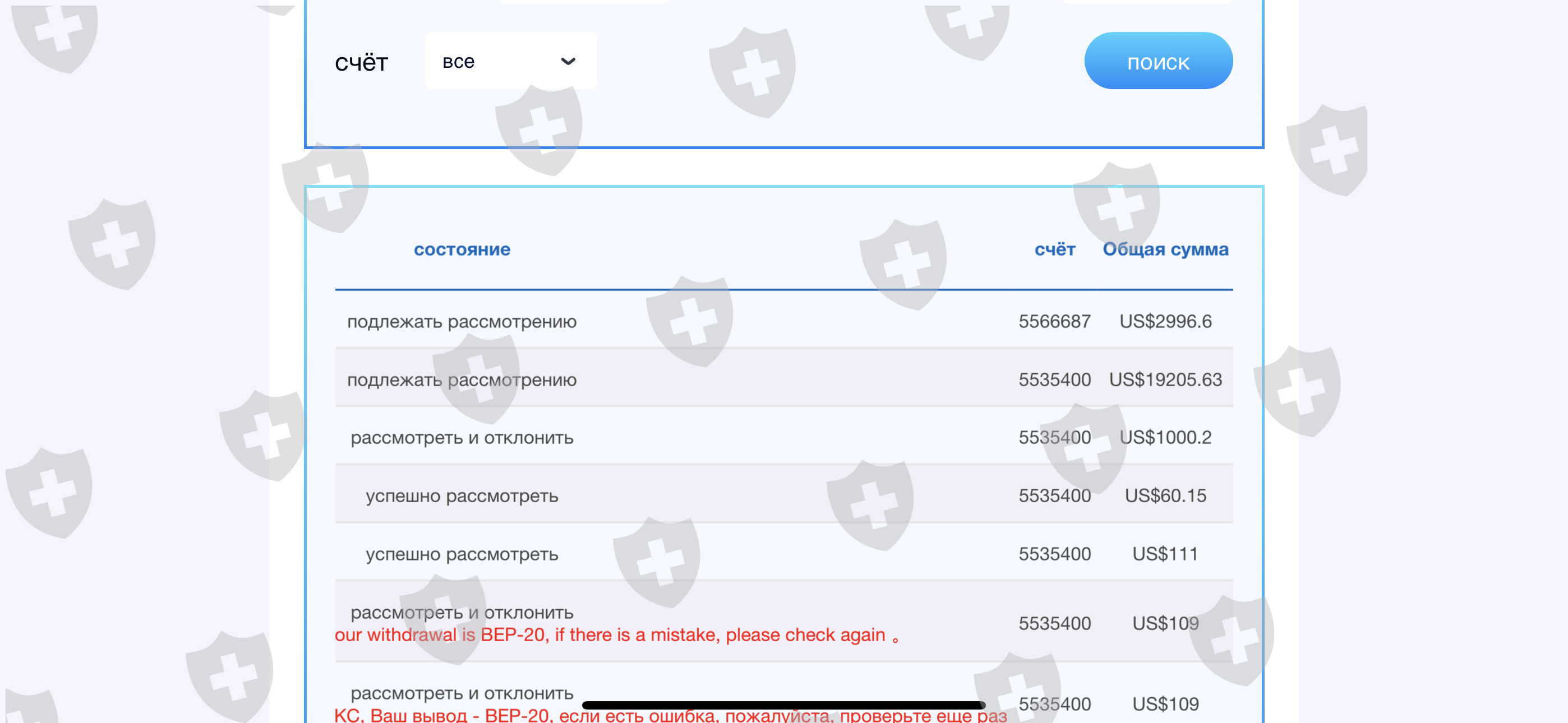 你好。我的名字是曼苏尔,我是一名交换逆变器 佰利安环球。我想声明无法从我的交易账户中提取资金。目前平台上禁止提取资金。我还没有收到有关情况的任何通知。技术支持服务保留反馈,要求立即向我的账户充值10%保证金以解冻交易账户。交易账号:5535400。如果不补货且不满足这些条件,该账户将被删除所有资金。我的账户余额:22202 USDT 我期待您的干预和及时反馈。谨致问候,平台投资者曼苏尔