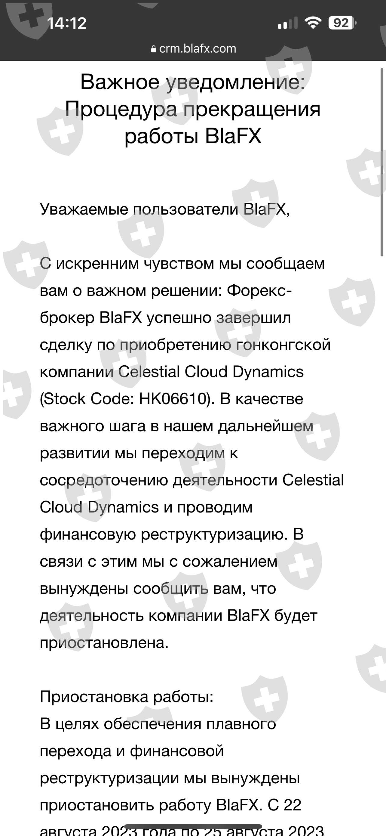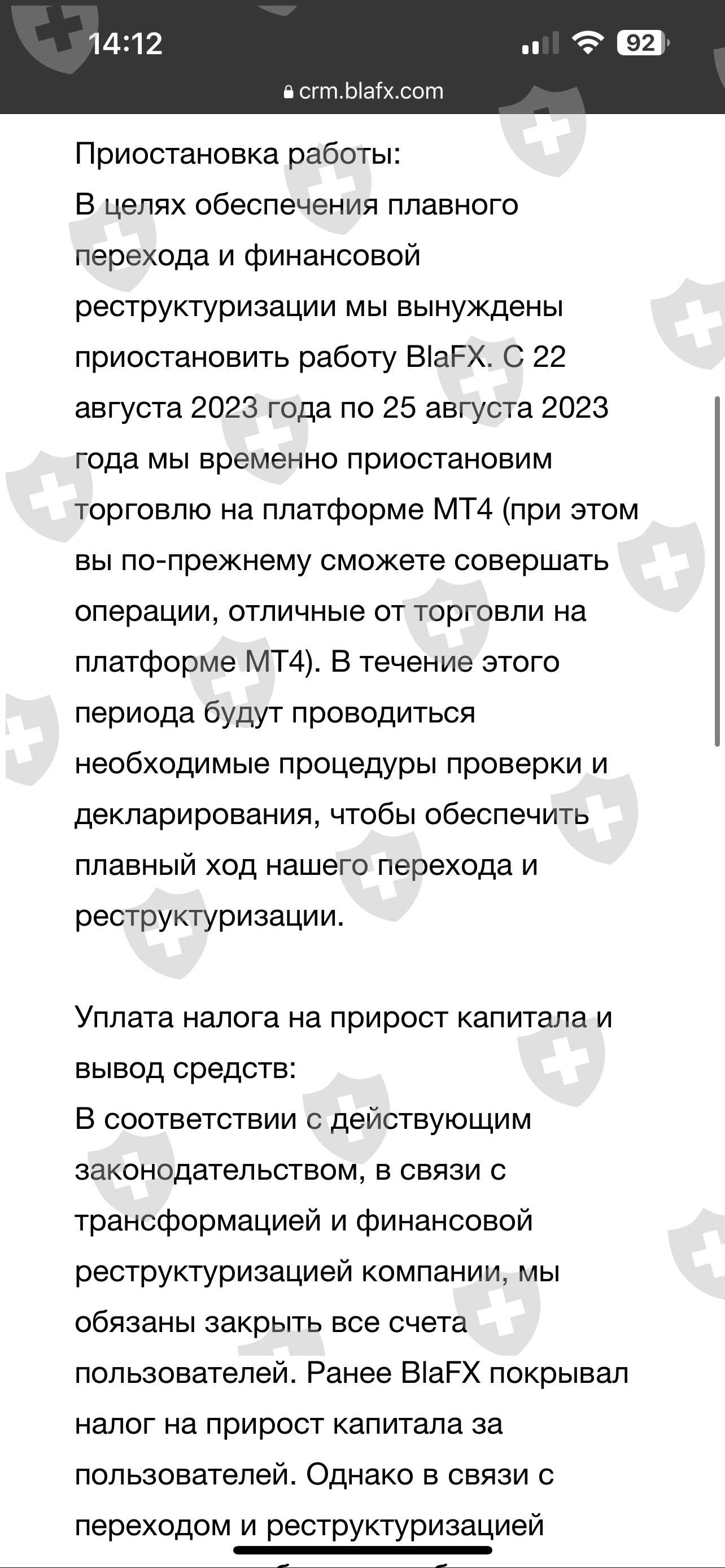 Добрый день. Платформа BlaFX сообщила о своем закрытии, но до этого сделали так, что пользователи не могли вывести свои средства. Якобы были технические работы. Прошу разобраться в данной ситуации и помочь мне в получении либо моих средств, либо гарантированной страховой суммы.