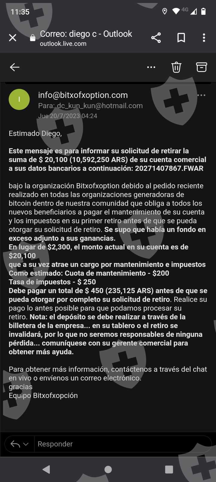 buen día, quiero exponer el fraude de esta empresa , va que se hace llamar empresa no voy a recuperar la plata pero por lo menos que no estafen a más gente tanto la empresa como la persona que me contacto por Instagram adjunto los chat gracias