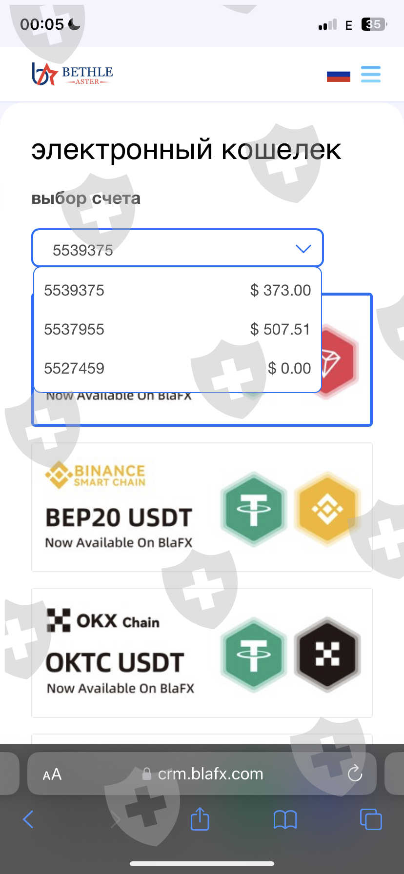 не возможно поставить деньги на вывод
