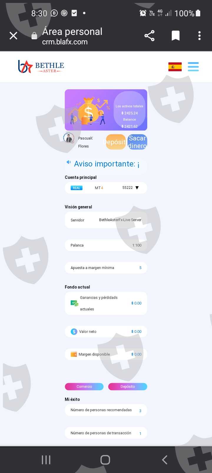 自2023年8月22日起我无法在该平台提款,客服提示您必须追加存入资金的10% 佰利安环球尽管已存款,但要激活该帐户,您无法提取资金。他们不回应客户服务。我失去了钱,欠了银行债,还失去了 4 个月的工作,纯粹是牺牲。我需要提取资金才能生存。