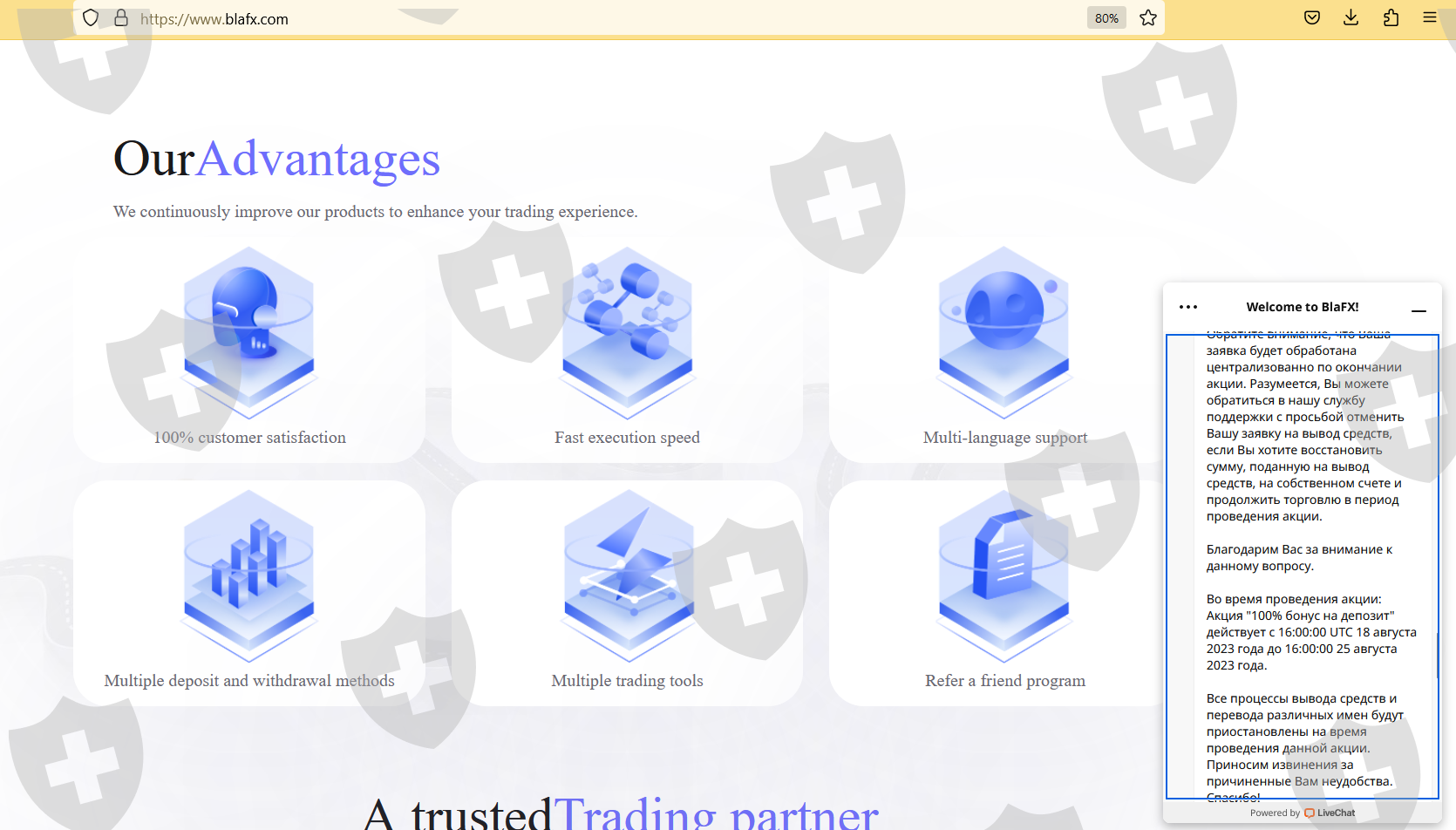 Не понимаю о каком дублировании контента идет речь и почему мою заявку не приняли. Дополнил информацию и скриншоты. Blafx не давали вывести деньги с 18.08 под видом проходящей у них акции, со 100% депозитом до 25.08. А 25.08 заявили, что они закрываются и для того, чтобы вывести предлагали заплатить
