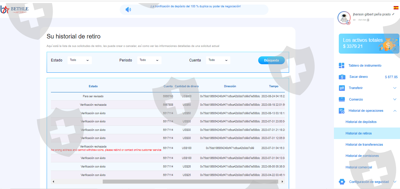 No se puede retirar, esta con autorización pendiente de retiro desde el 24 de agosto. Tampoco contesta el servicio al cliente, no sabemos si podremos recuperar al menos la inversión base. Es un fraude.