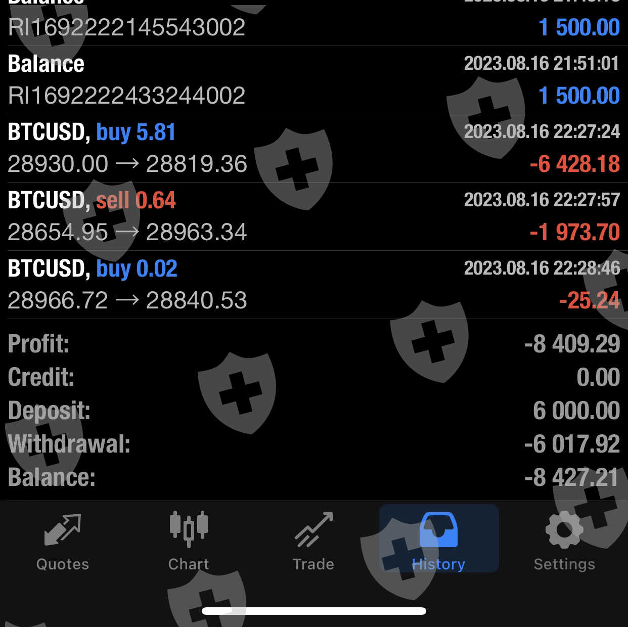 Blaf manipulo nuestra cuenta robando nuestro dinero, cerca de 8500 de perdida quedando con solo 9.81 de balance además congeló las cuentas para no poder hacer retiros hasta el día de hoy muestra pendiente el retiro que hice request y no lo a procesado no podemos retirar no solo mi cuenta pero la cuenta de 5 personas que estaban bajo me recomendación estamos hablando como de 1100 USDT juntos en total blafx se a quedado con una cantidad de por lo menos 9500 USDT mi ID 13646907 espero si nos pueden ayudar en este caso a demandar esta compañía por FRAUDE