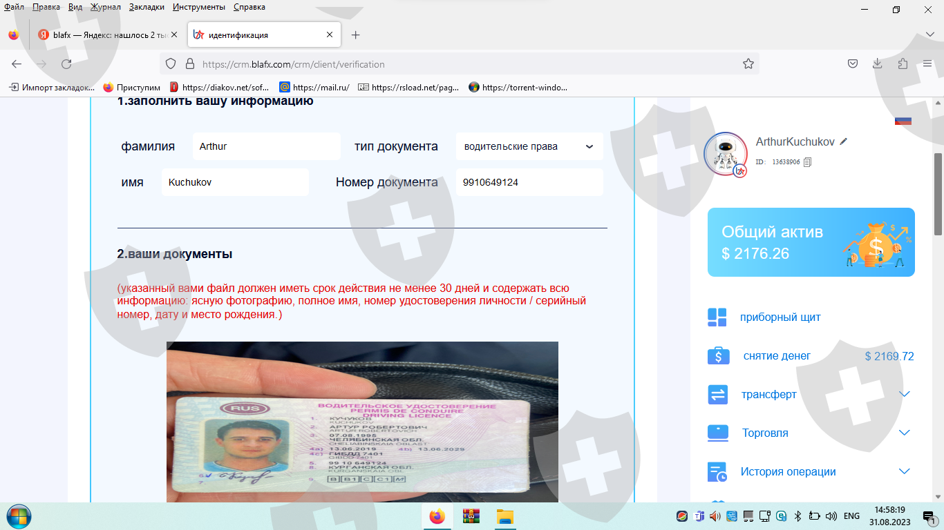 обработки) со счета. Сумма моего депозита 2169$ прикладываю скриншоты с