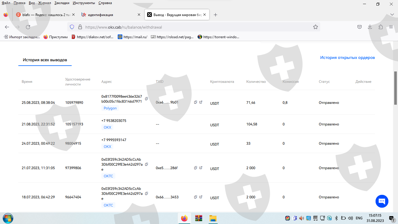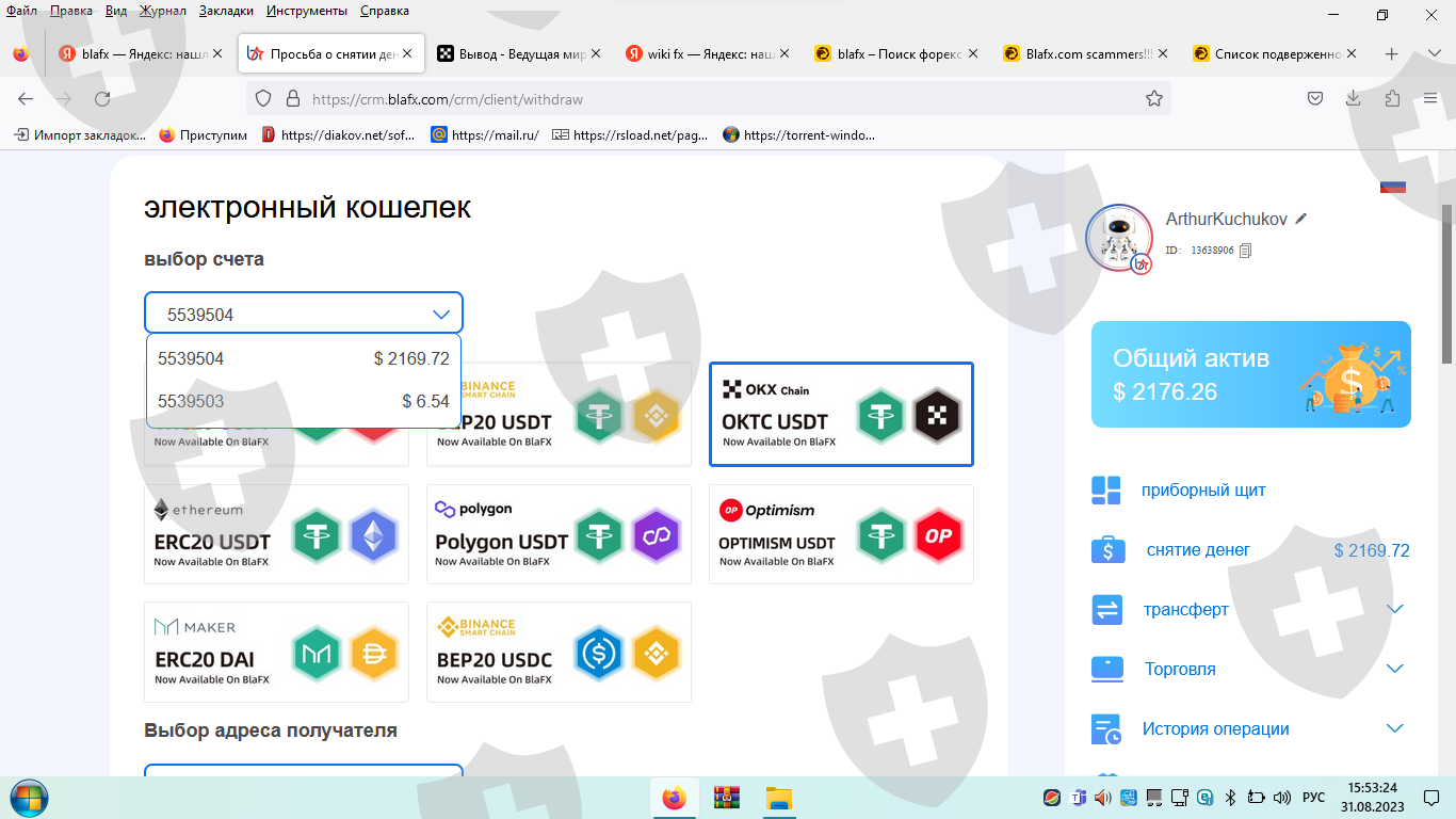 аккаунта Blafx.com и c адреcа пополнения OKX.com. C 22.