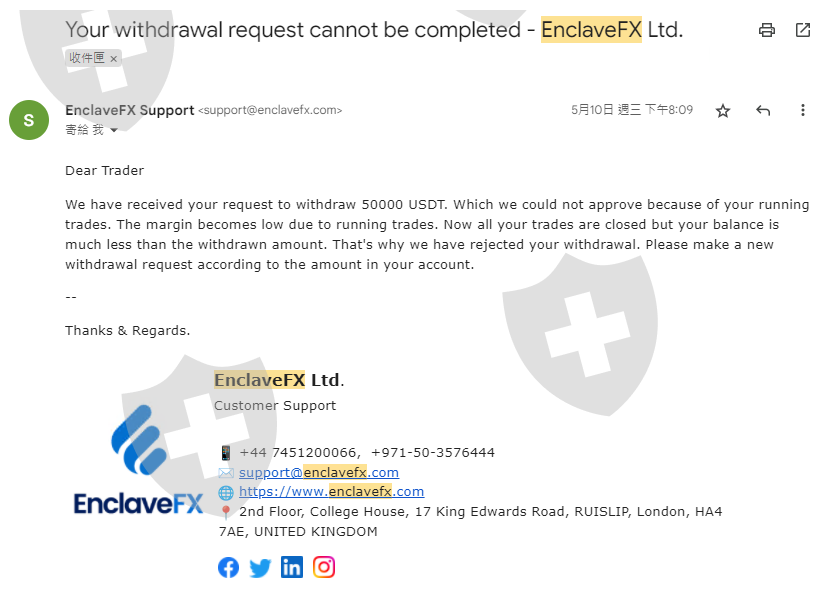EnclaveFX is a total SCAM. EnclaveFX made up fake losing orders to take my money. Be careful if you're considering using EnclaveFX. They tricked me and took all my money. They changed my password and made it look like I lost money to take all my money. They didn't give me my money back and didn't reply to my messages. Instead, they made fake orders to have a reason to say no to my request. The former account manager brought me into the scam. The boss of EnclaveFx remains at large. They blacklisted me.