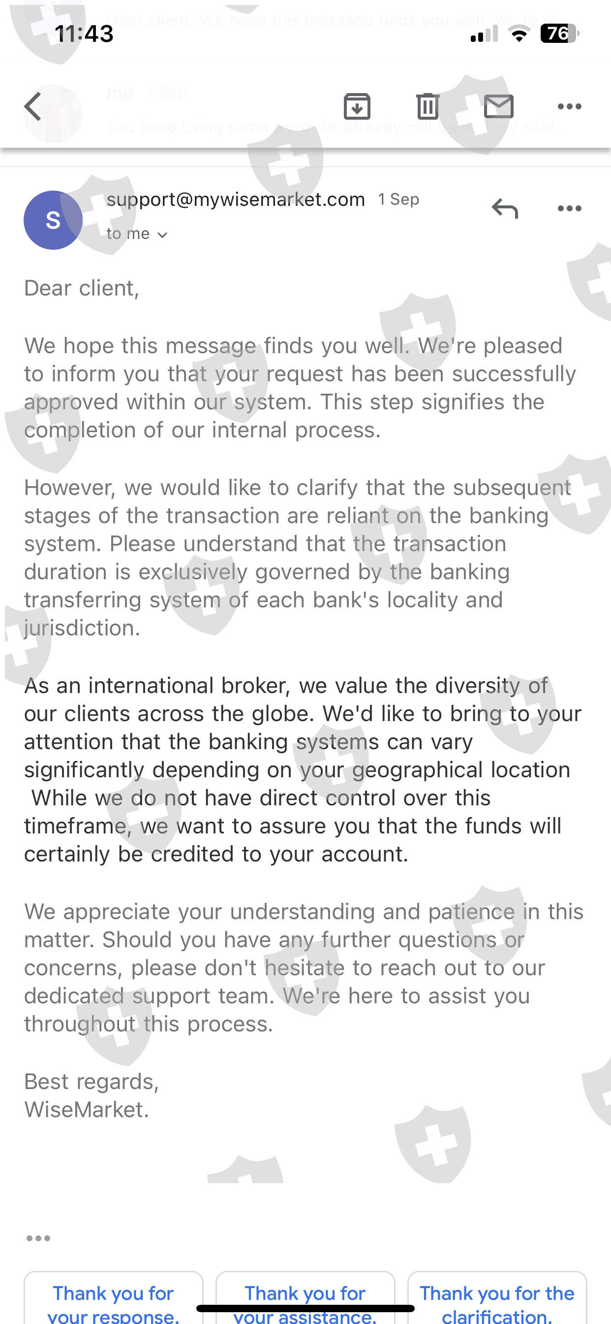 8月24日出金申请就通过了,但是资金现在还没到账。每2天就给他们发电邮,但是每次回复的都是一样的话。我推断可能被骗了。大家小心这个交易商和提供商Fira Indicator。不要成为下一个受害者。