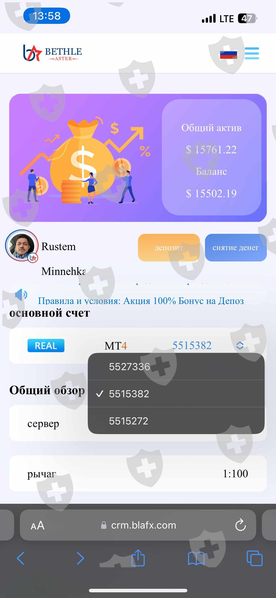 обработки) со счета. Сумма моего депозита 15761$ прикладываю скриншоты с аккаунта Blafx.com