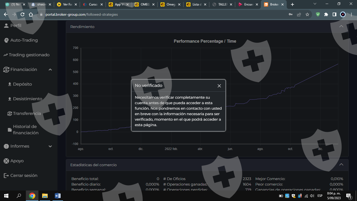 saludos,tengo una inversión en omega pro, pero el dinero lo pasaron para otra plataforma que se llama (BROKER GROUP)la plataforma no deja solicitar el retiro del dinero, dice que se pondrán en contacto pero nada pasa. Él tiempo estimado de retiro ya se cumplió y no me dejan retirar, por favor me pueden ayudar.
