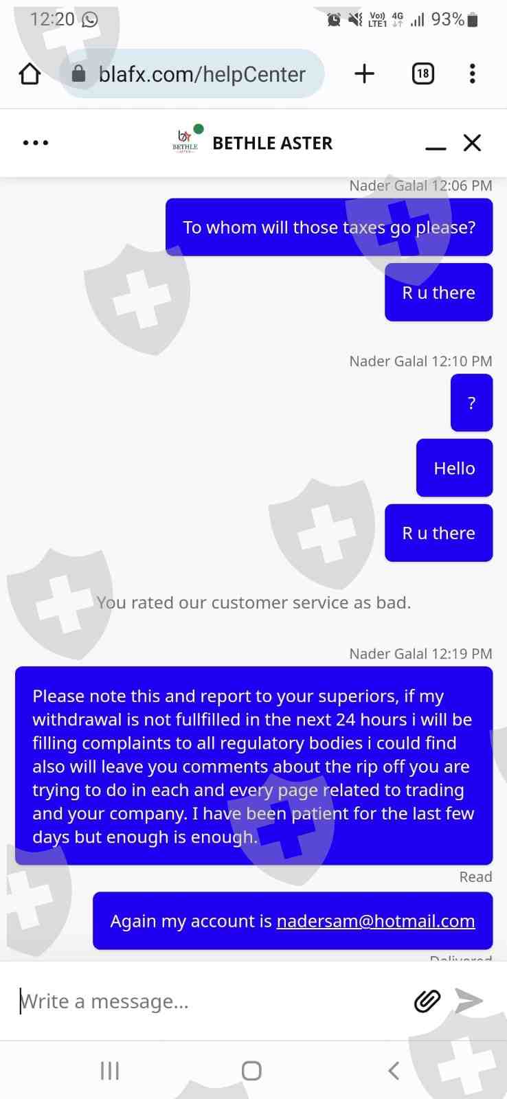 told them that I will file complaints on all regulatory bodies and their pages