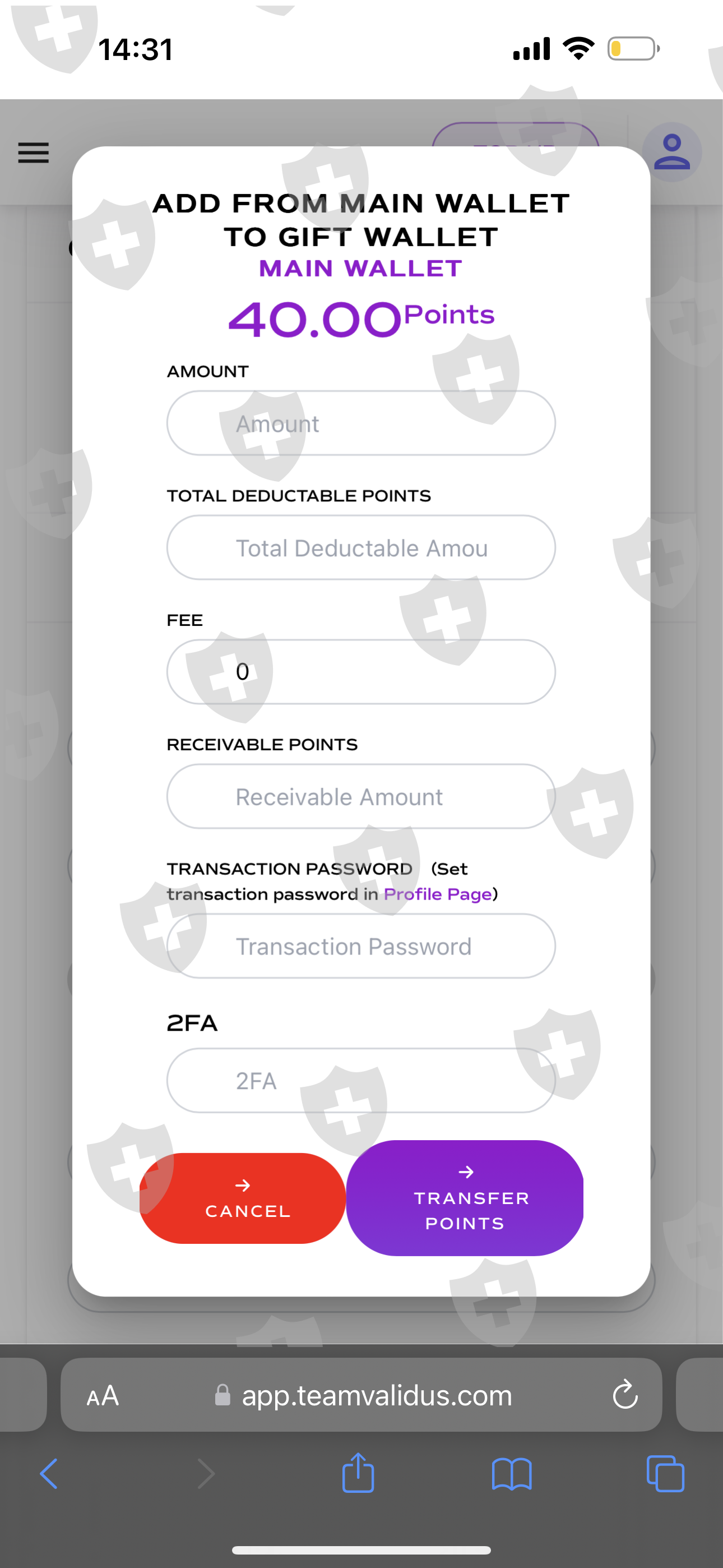 Hola cómo estás? Estoy tratando de retirar el dinero de team validus y no me deja. Invertí 250 usd en una cuenta y en otras 2, 50 usd en cada una. Supuestamente podría retirar y no me deja. Tengo el dinero en la gift Wallet y no hay manera de transferirlo a ningún lugar salvo enviarlo de cuenta a cuenta. Necesito recuperar el dinero invertido.