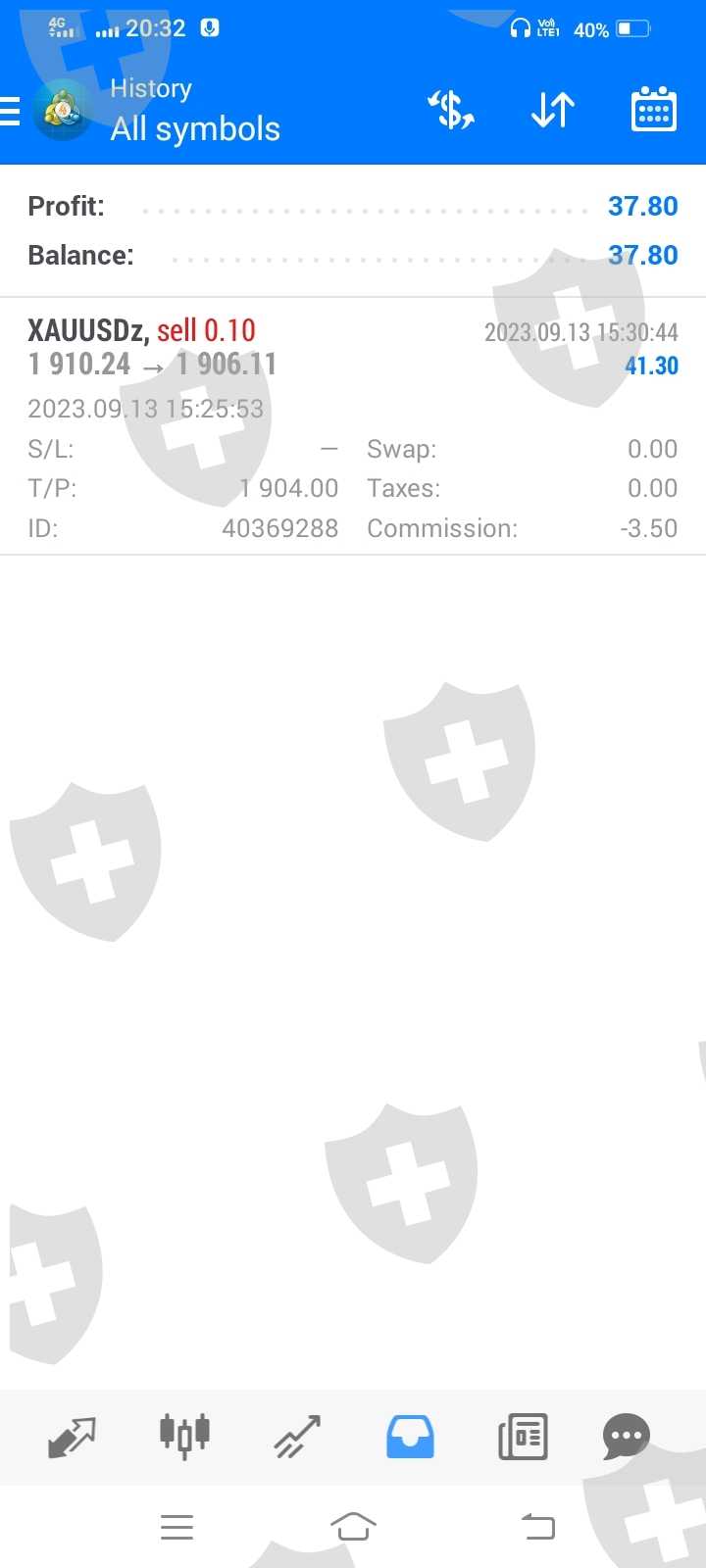 我使用的是fbs的零点差,我在xauusd上下了订单,止盈设置为1904,但价格到1903.22,止盈也没有被触发,所以我选择在1906.11平仓,损失了20美元