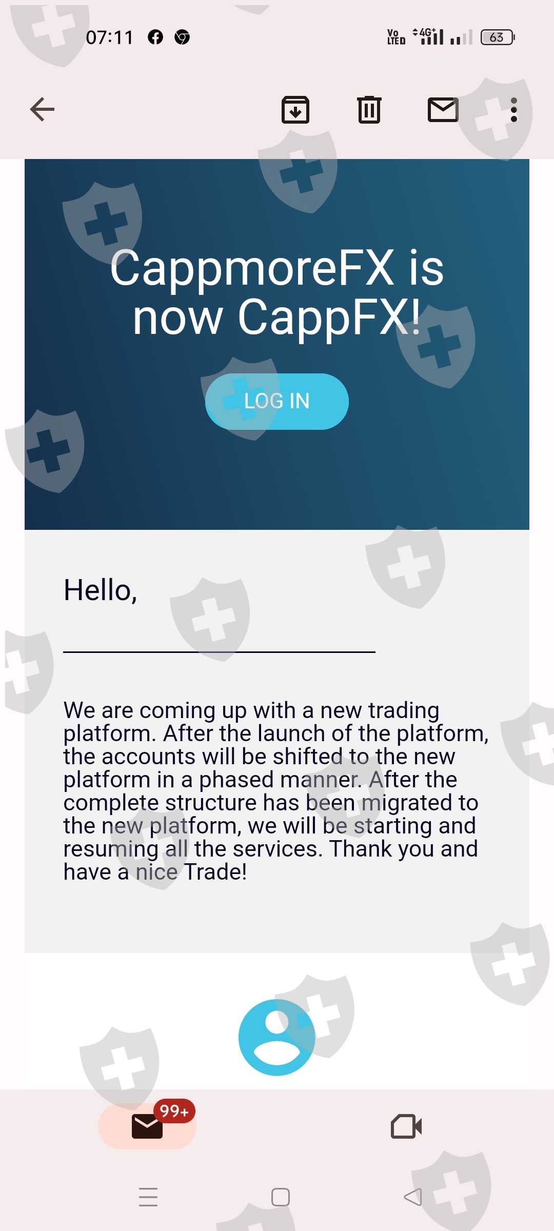 I think that Cappmorefx not scammed us. Because they have faces a lot of technical issue after the server up-gradation like copy Trade, (if Trade closed by the Trader, in multiple of Account Trade were not closed.) Withdrawal Problem (They have started Crypto Withdrawal in July for 2-3 days arround 15-17 July. Withdrawal done in accounts but it was not deposited in Binance). IB Commission ( many accounts got more IB Commission from referal Accounts. For example 123456 want to get 1 dollar from 223344 account for 4 lot. But it has got 5-6 Dollar for 4 lot). and they have disconnected from MT5 platform, these are facing from server issue after they made latest up-gradation on july. So they tried to rectify and solve the issue till august 2nd week but it was not solved. and they made some application changes and decided to buy a new server or domain. For this they have changed the company name to CAPPFX. and registered the domain on 18th of August arround 2 PM and they have sent a E-mail to client Accounts registered E-mail regarding company name changed. and they have taking a time for to create a new website for Cappfx or they are making any modification on existing Cappmorefx website. They said that in previous E-mail they are comming up with new platform and they will shift the data to they new platform. Even I am also a investor on this cappmorefx. I am not company person. These what i stated above are true. Because i have checked in many Accounts it has been caused like this. So be in patience while they get 15-30 days time. let us hope for positive. Even in my two Accounts had arround 9500 USDT. I am also having lot of pain.