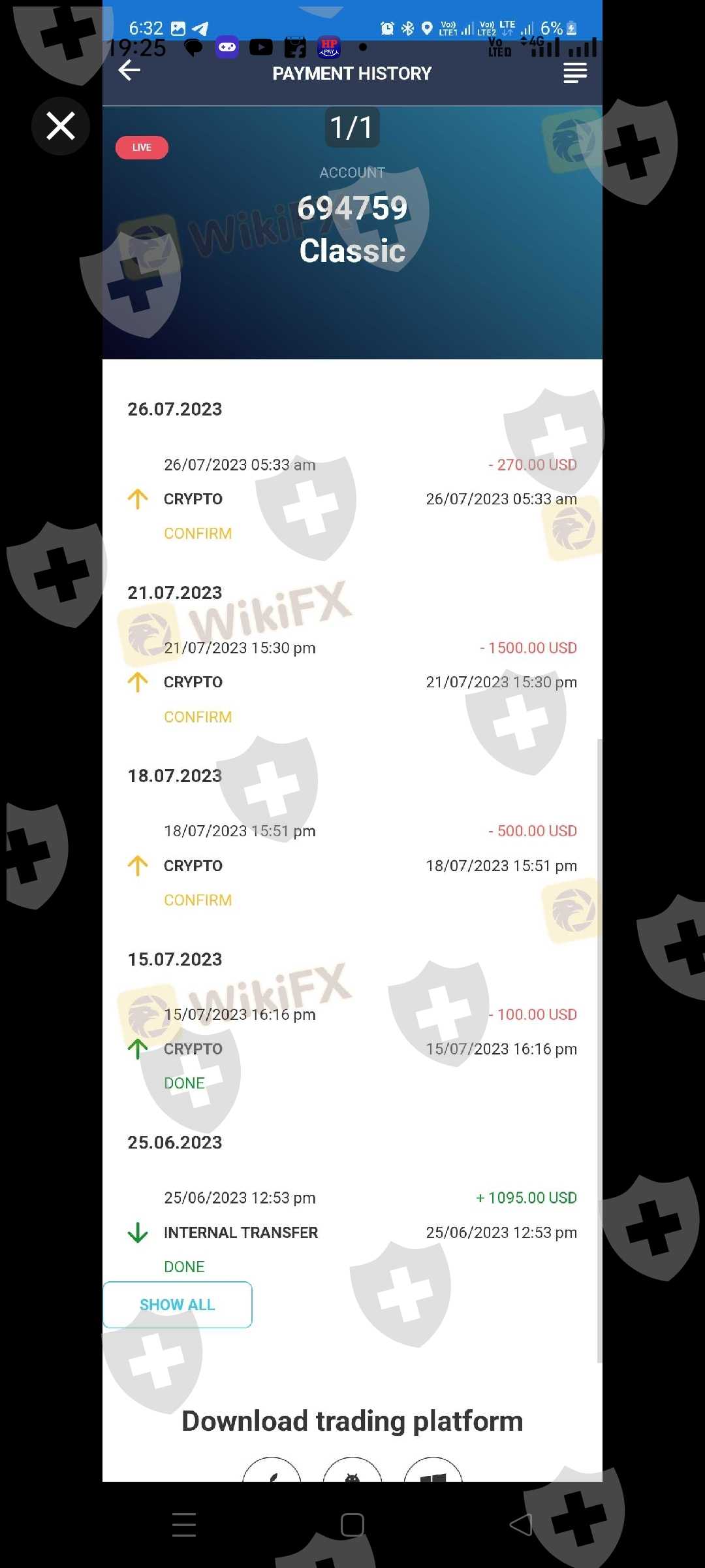 我认为 Cappmorefx 没有欺骗我们。 他们在服务器升级后面临很多技术问题,例如跟单交易,(交易者关闭交易,但是多个帐户交易未关闭。) 出金问题(他们已于 7 月开始出金加密货币,持续两三天,大概是7 月 15 日至 17 日。出金已在账户中完成,但未存入币安)。 IB佣金(许多人从推荐账户获得更多IB佣金。例如123456想从223344账户获得1美元4手。但它之前已经获得4手5-6美元)。他们已经与MT5平台断开连接,在7月进行最新升级后面临服务器问题。 他们试图解决这个问题,直到8月2日那周,仍未解决。 他们更改了一些应用程序并决定购买新的服务器或主域。 为此,他们将公司名称更改为 CAPPFX。 并于 8 月 18 日下午 2 点左右注册了域名,已向客户帐户发送了有关公司名称更改的电子邮件。 他们花时间为 Cappfx 创建一个新网站,正在对现有的 Cappmorefx 网站进行修改。 他们在之前的一封电子邮件中表示,他们正在推出新平台,并将数据转移到新平台。 就连我也是这个cappmorefx的投资者。 我不是公司人员。 我上面所说的是真的。 因为我查了很多账号都是因为这个原因出现问题。 因此,请耐心等待 15-30 天。 让我们积极期待。 我也很痛苦,因为我的两个账户里也有大约 9500 USDT。