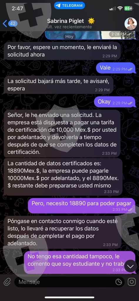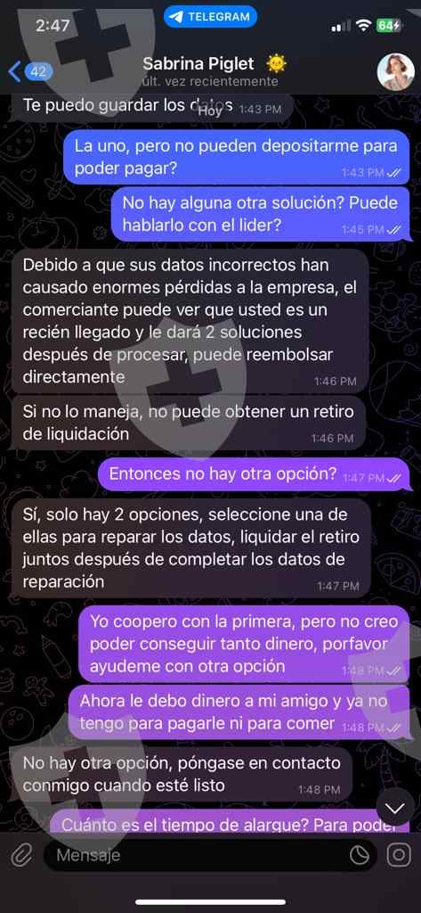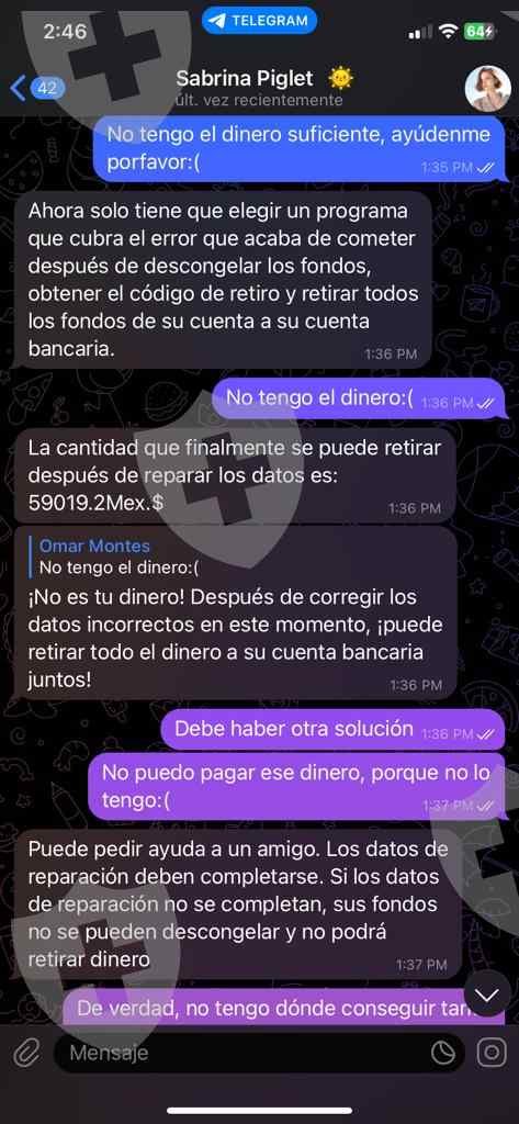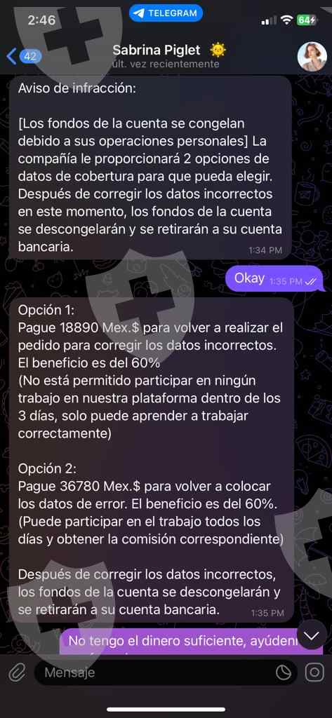 Hola, me llamo Omar Montes y soy de México. Primero me contactaron por WhatsApp y me dieron tareas sencillas calificando lugares, después me pidieron un deposito de 300 para que después me regresan 450, lo cual si sucedió, después me pidieron otros mil, después de eso 3150, y al final 7460, a lo cual hice lo que pude y lo deposité, este dinero se iba a criptomonedas, pero por error le puse a otra diferente a la que me dijeron, y ahora me están pidiendo 18k que claramente no puedo conseguir porque no trabajo para poder recuperar el dinero congelado. Me dieron fecha límite hoy a las 8pm :(