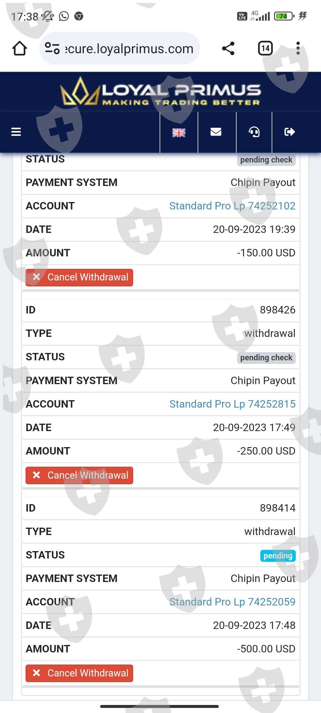 出金日期相同,时差只有1分钟,为什么不能通过? 只有 1 个蓝色待处理? 其余的仍在等待审核..咨询台甚至没有回复我的消息...太失望了