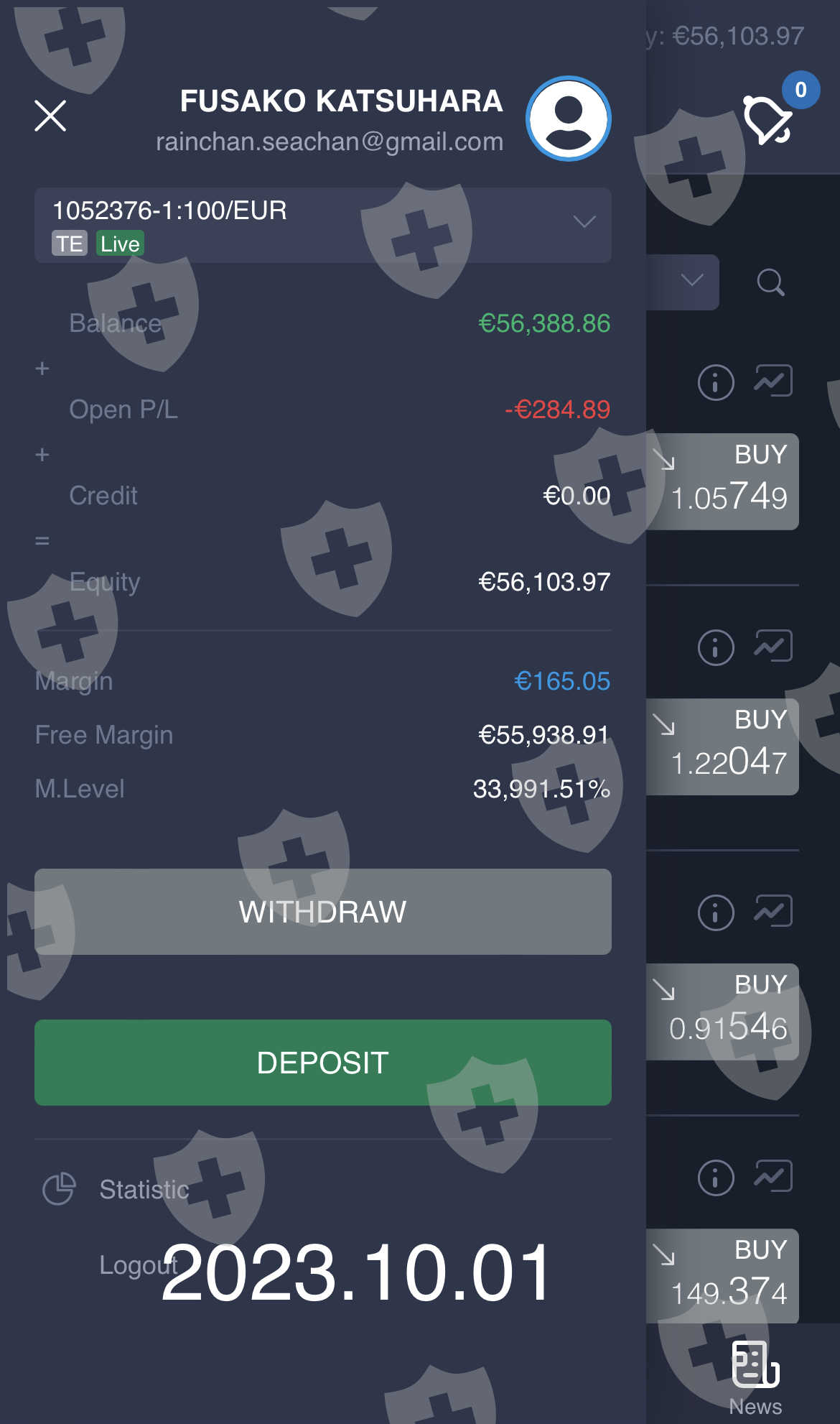 プライベートのプラットフォームに投資金とボーナスが表示される