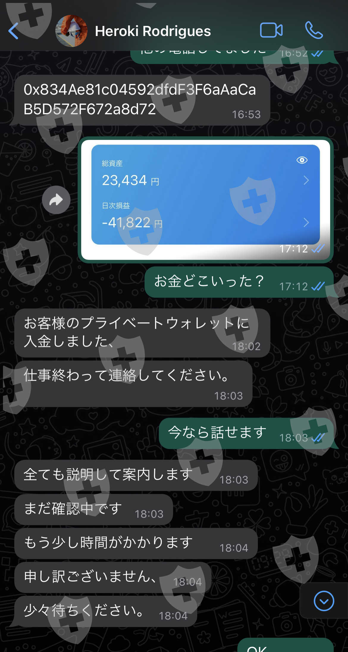 その後、ブロックチェーンを名乗る電話があり