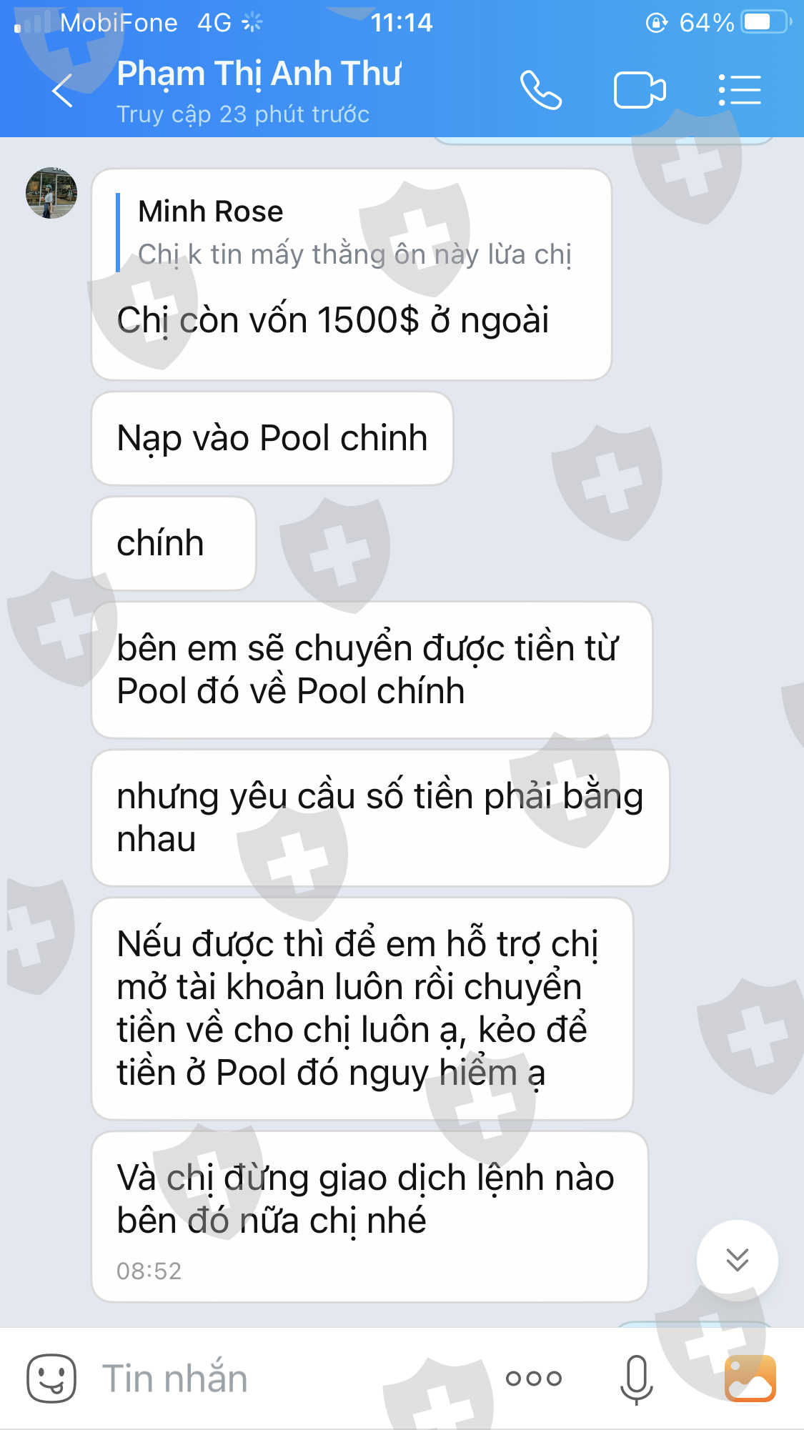 Tôi bị sàn Gallen Capital lừa đảo chiếm đoạt tài sản vô cùng tinh vi , tổng cộng 2 lần tôi nạp 3004 đô . chúng cấu kết giả mạo lừa gạt tôi , lần 1 có nhân viên tên Quang Huy gọi tôi là nhân viên sàn , mời chào tôi nạp , tôi phân vân thì có thêm một người tên Sơn trên mạng nói cũng nạp vào Galen capital , tôi bảo test thử đi 100 đô đi thì Sơn nói Sơn test hẳn 1000 đô , tiền về nhanh quá , Sơn còn cho tôi xem tiền trừ trên MT5 đúng 1000 đô , vì vậy tôi chủ quan không tét, tôi nạp vào ngay 1500 đô , tôi vừa nạp thì Sơn bảo tôi là chị ơi chị nạp vào pool 2 rồi , bọn này làm ăn láo , chị liên hệ với bạn Phạm Thị Anh Thư là support chính , bạn giúp chị và Sơn chưng ra cái mail của sàn giới thiệu được sàn xác nhận liên hệ với người tên là Phạm Thị Anh Thư . Thư liên hệ với tôi , Thư bảo bên Pool 2 làm ăn láo , bên Thư nạp rút tự động, chuẩn, chị nạp vào bên đấy khó rút. còn bên Huy hôm sau tôi xin rút thì lại nói phải giao dịch 2 lot dầu mới đủ khối lượng để rút còn không khoá giao dịch. Thư bày cách cho tôi là bên Pool chính sẽ hỗ trợ cho khách rủi ro ở Pool 2 , với điều kiện là nạp đúng bằng số tiền mà nạp vào Pool 2 ( chỗ Huy) . rồi bên chính sẽ chuyển tiền 1500 bên chỗ Pool 2 về và tôi có thể rút được hết , tôi định hỏi Sơn xem có rút được không thì Sơn chưng luôn ra là Sơn mới rút thêm 5000 về luôn trong ngày, tôi hỏi kỹ Thư là liệu bên kia khoá thì bên em có chuyển được không , Thư nói là vẫn chuyển được, thế là tôi mở Tk mới đặt dưới link Thư , ban đầu Thư cam kết là nạp tiền vào sẽ chuyển được ngay trong ngày, ( hôm tôi nạp tk bên Thư là thứ 5 , nay là thứ 2) chiều Hôm sau hết lý do nọ lý do kia Thư cũng k chuyển được 1500 đô từ tk pool 2 ( mở của Huy ) về Pool chính ( mở của Thư) , tôi nạp xong 1500 đô nữa thì Thư lại nói giờ phải nạp thêm 500 đô nữa thì mới chuyển được. tôi bảo tôi k có , Thư nói thế chị đợi sang tuần em khoá pool chính và chuyển về cho chị . Đến nay thứ 2 tôi liên lạc với Thư thì Thư lại nói phải đánh đủ tiền ký quĩ là 30% tiền nạp thì mới được