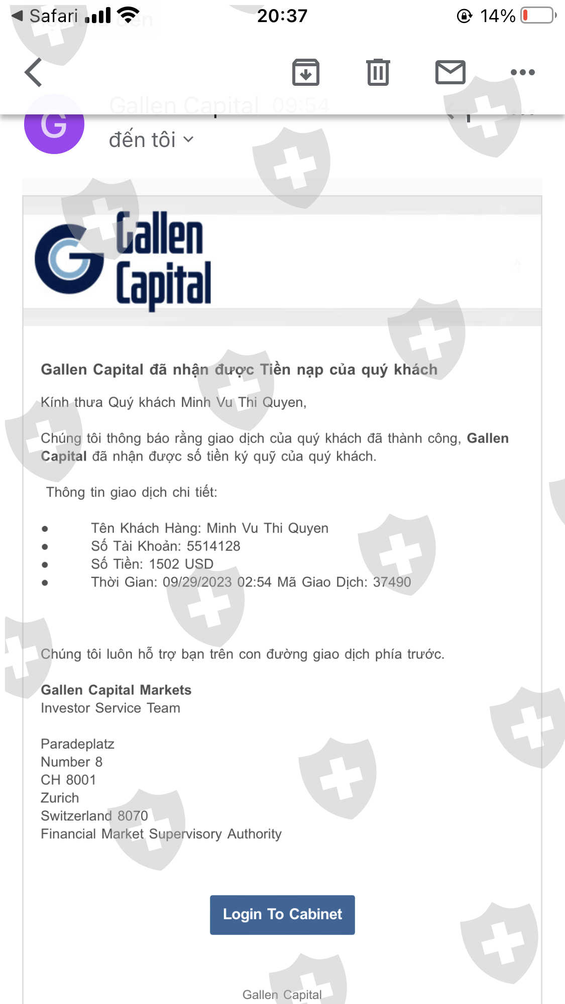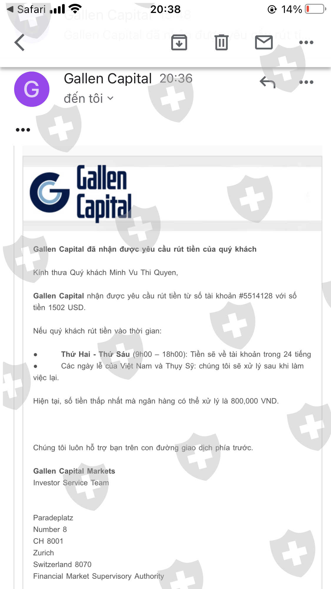 không thể rút tiền sàn Gallen Capital phần 2