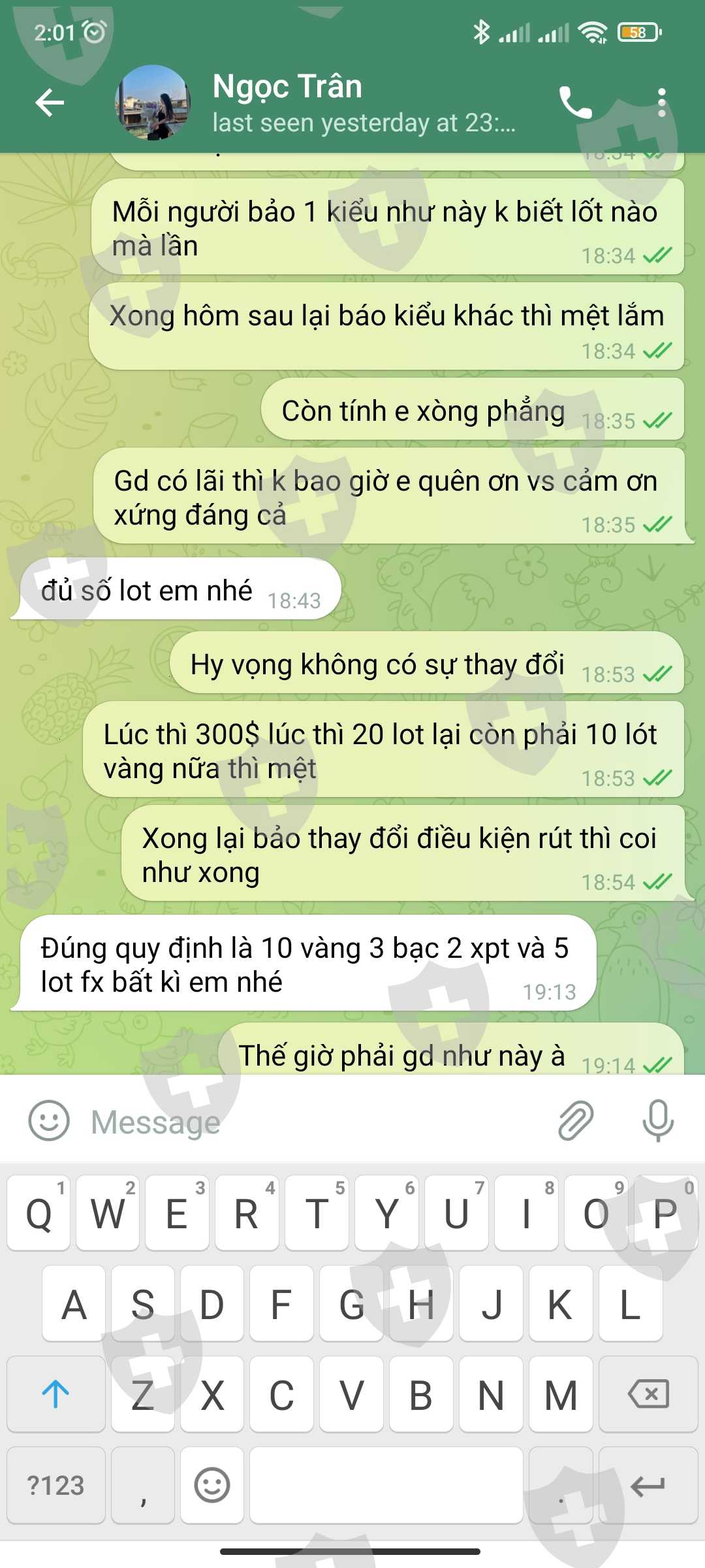 sàn không duyệt lệnh rút tiền, lúc thì yêu cầu nhà đầu tư giao dịch đủ 300$ phí ( đã giao dịch đủ phí ) , giờ thì lại yêu cầu giao dịch đủ lót theo sàn yêu cầu là 10 lót vàng, 3 lót bạc, 2 lót XPTUSD và 5 lót forex bất kì ( xin làm ơn hỗ trợ ) xin cảm ơn.