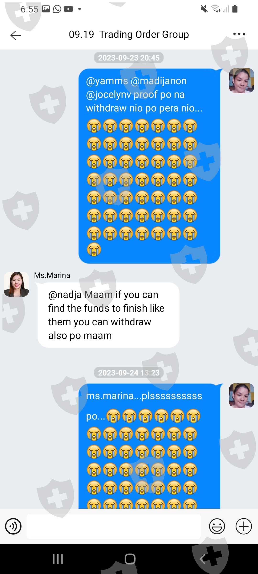 在obt交易,他们有小组任务。第一个任务订单的入金成本为150美元,他们会给30%的佣金。第二笔任务600美元,含40%的佣金。我还给了他们第三笔任务订单12000美元,含50%的佣金。因为我没有钱,后面就没有继续做任务。经纪人对我说,因为我没有完成任务,经理无法批准提款。。是我的问题,我很难过,也睡不着了。。请帮帮我。我也不懂交易。。