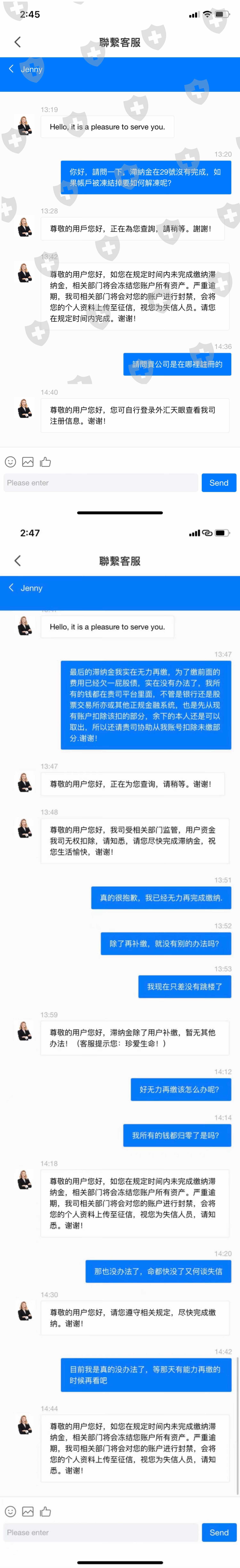 最後實在拿不出錢的時候,平台還是一樣恐嚇說詞,未在規定時間內完成滯納金繳納,公司相關部門將凍結帳戶所有資金,嚴重逾期公司相關部門對賬戶進行封禁,會將個人資料上傳至徵信,視為失信人員.這時候的騙子也消失的無影無蹤!