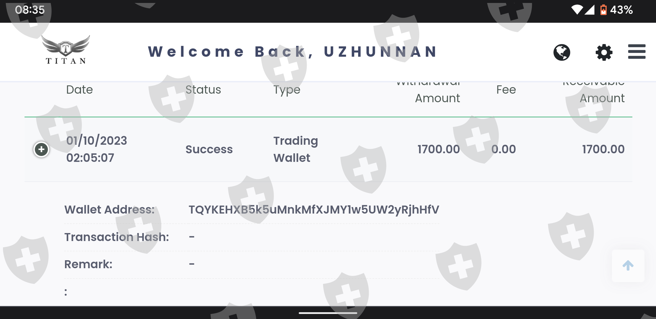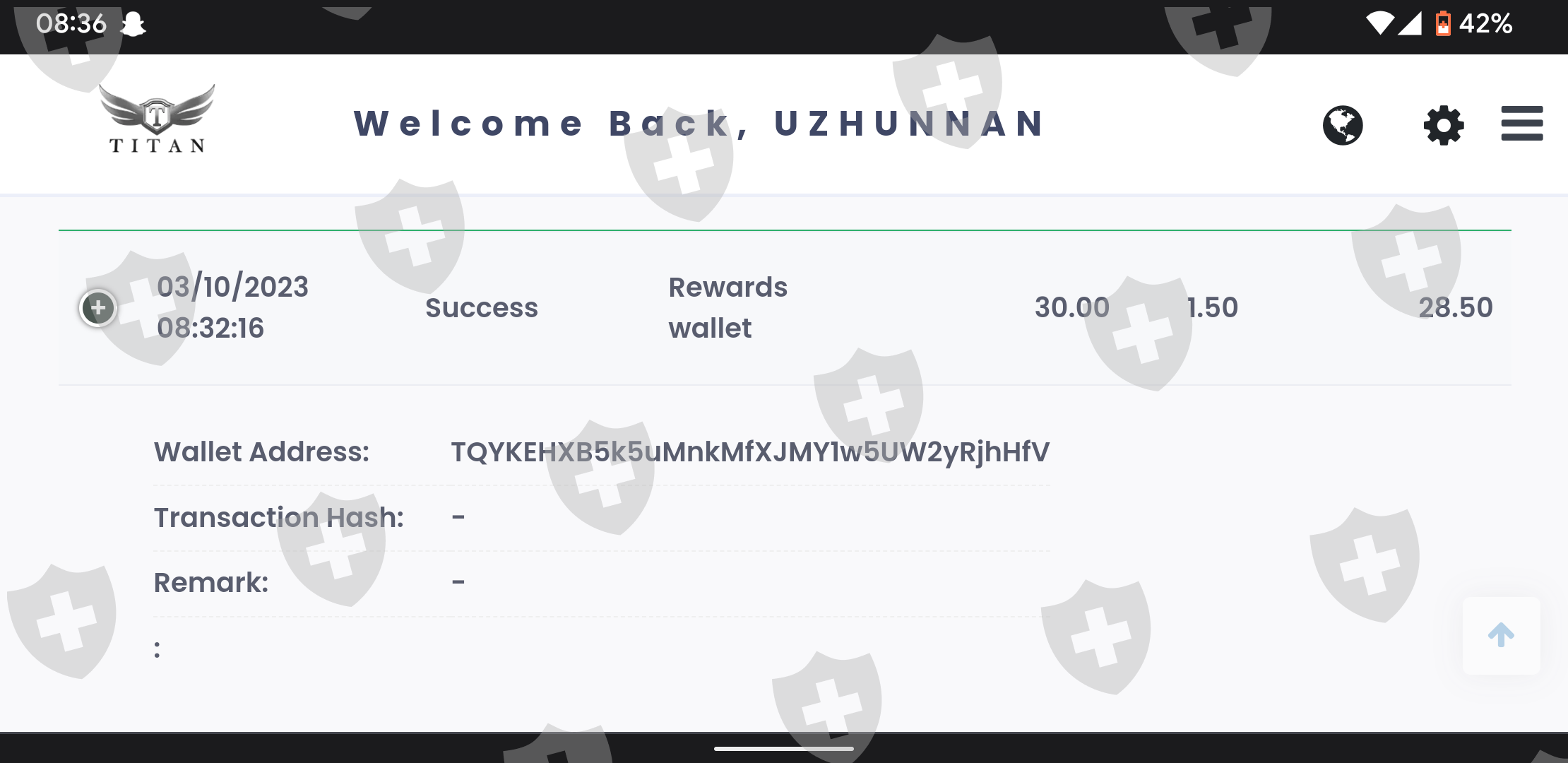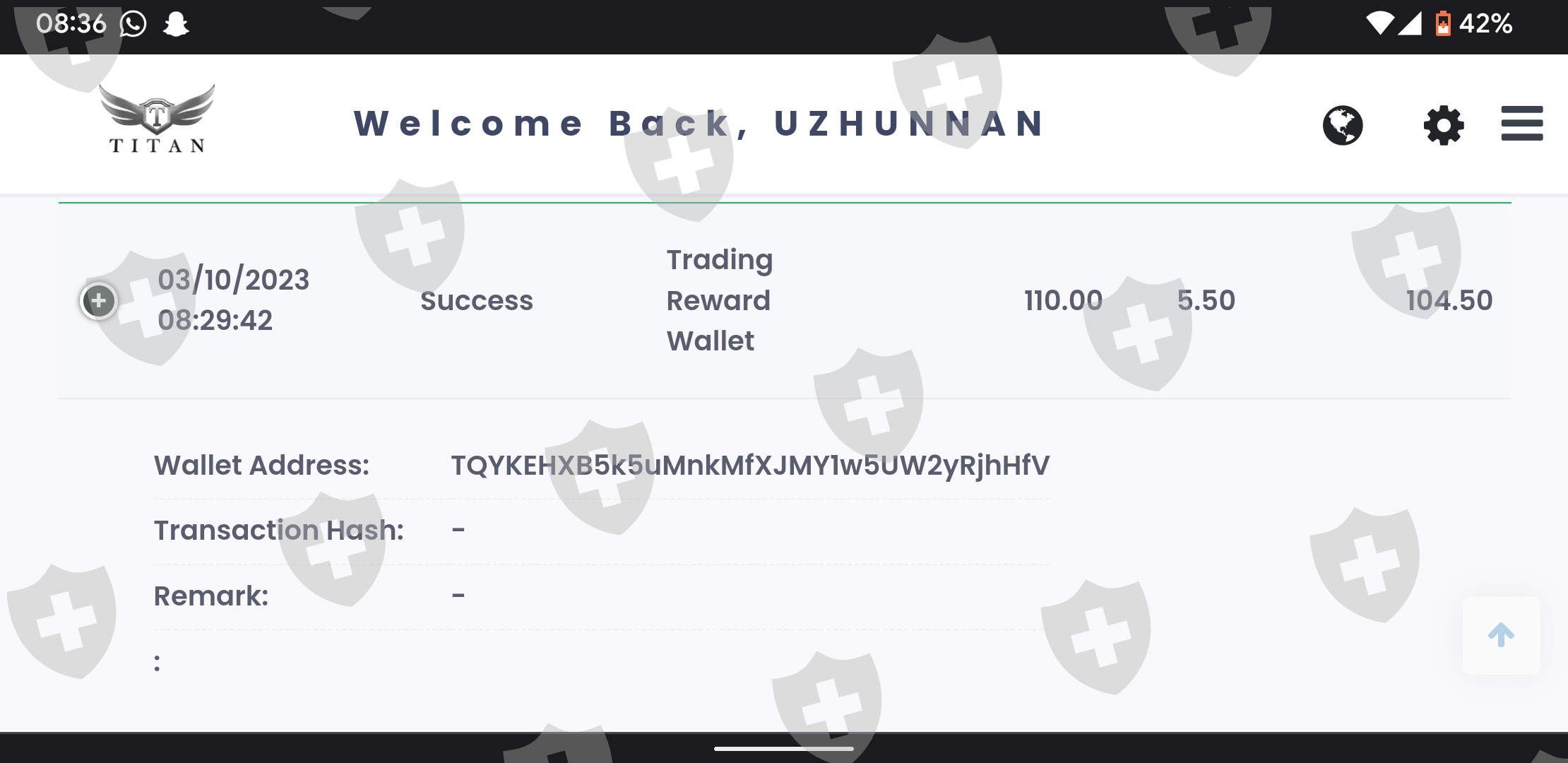 I am a member trading in Titan Capital Market. I had a total of 1840 USD in my account where it was 1700, 110, and 30 USD in trading wallet, trading reward wallet and reward wallet respectively. I requested for re entry principle where we could withdraw the profit and the capital amount goes back for trading. I only requested re entry principle and gave my binance wallet address but money including my capital was withdrawn from three different wallets to a single wallet address that I have no knowledge of. I tried contacting my higher ups for help and they confirmed that it was not from my side. I only am in possession of the transaction code and I did not share it with anyone. When I complained in the website's help and support, they keep telling me that the fund is already transferred and that it cannot be undone. How does that work when I only tried withdrawing my profit and not only did I not receive it, I lost my capital with it too. You have to understand that ALL THE FUNDS were transferred to ONE SINGLE WALLET ADDRESS. I addressed in the website's help and support that I will have to take legal actions but they aren't ready to retrieve my fund back to me.