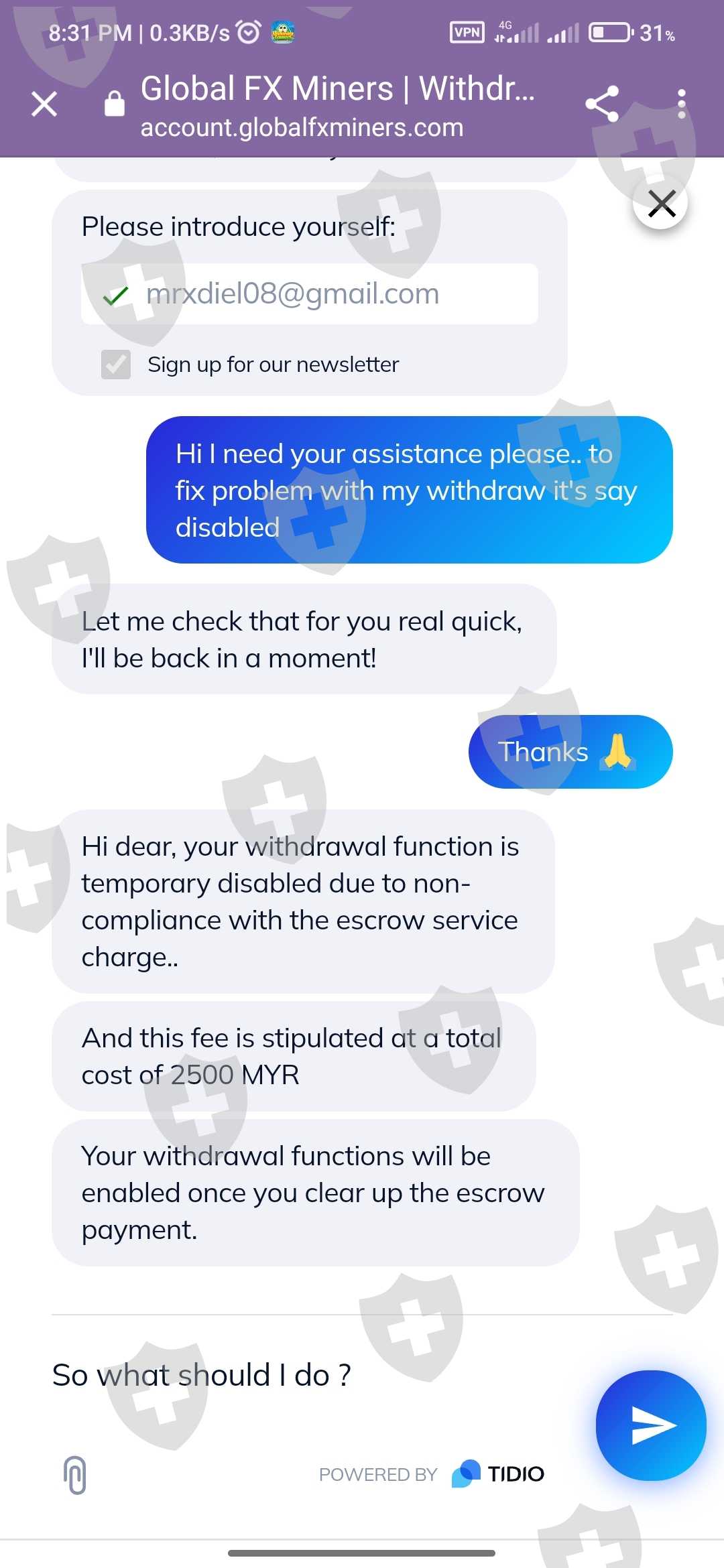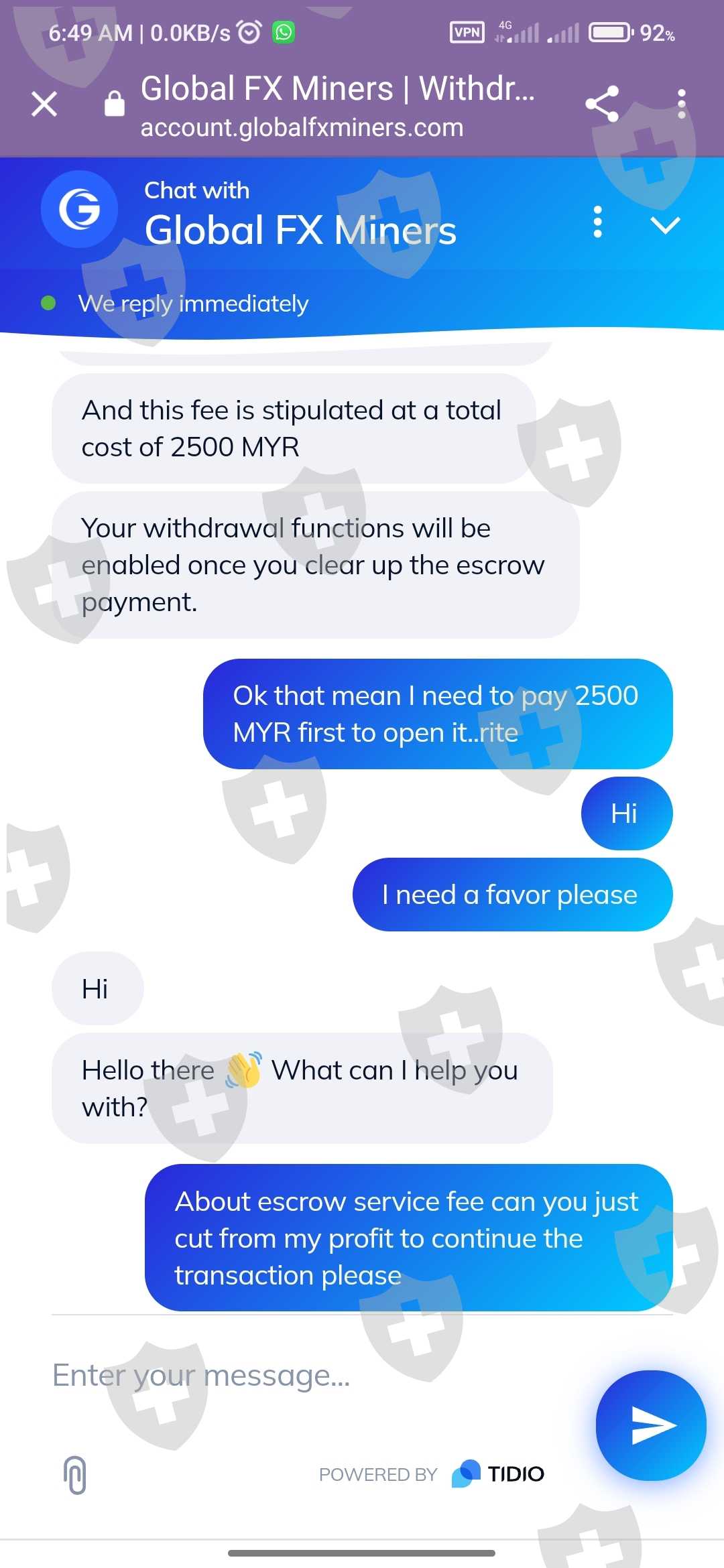 交易员说我盈利很多,但如果我不支付2500MYR的托管费就无法出金,需要付款才能继续交易。